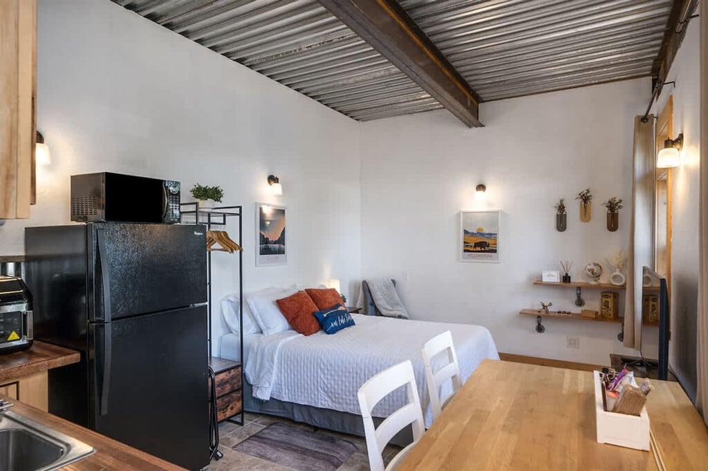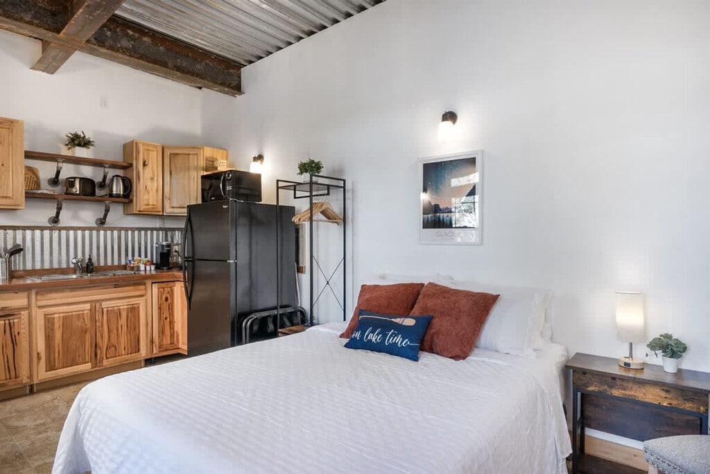 Welcome to your extended stay on Foys Lake, where you can feel at home in this updated studio with a private entrance and a deck overlooking the lake. Located just 5 minutes from Kalispell and the Bypass on Main Street, this studio offers easy access to some of Montana's most renowned outdoor activities. This minimalistic studio blends modern convenience with vintage charm, making it an ideal space for a couple or single person who appreciates comfort and simplicity. The kitchen is equipped with a full-size refrigerator, convection burner, microwave, and counter toaster/oven, offering a perfect blend of old-fashioned character with modern living. The studio features a queen-sized bed and a private bathroom, providing solace after an adventurous day exploring northwest Montana or returning home from work. Mid-stay cleanings are required for all reservations longer than 36 days, with the first mid-stay clean included in your reservation. Additional mid-stay cleans will incur extra fees. Trip insurance is available as an add-on upon completing the booking. The Kalispell area boasts numerous events and festivals, rodeos, shopping, and cultural events. This studio serves as your central home base for countless fall and winter activities, including touring Glacier National Park, fishing, rafting, hiking, tubing, golfing, shopping, or sampling menus at nearby restaurants. Foys Lake House is about 45 minutes from the West Glacier National Park entrance, and Whitefish Mountain Resort offers fun activities for all four seasons. Kalispell, the largest city in northwest Montana, is an outdoor enthusiast's paradise. Quiet hours are from 10:00 PM to 8:00 AM. No smoking, no pets, and no parties or events are allowed. Mid-stay cleanings are required every 36 days for long-term bookings. A minimum age requirement of 21 years old applies, and a vacation rental agreement must be signed prior to arrival. Parking rules must be followed when parking your vehicles. The studio includes desk space for those who need to work, with wireless internet available. However, Wi-Fi speeds cannot be guaranteed based on weather or usage in the area. [SI]