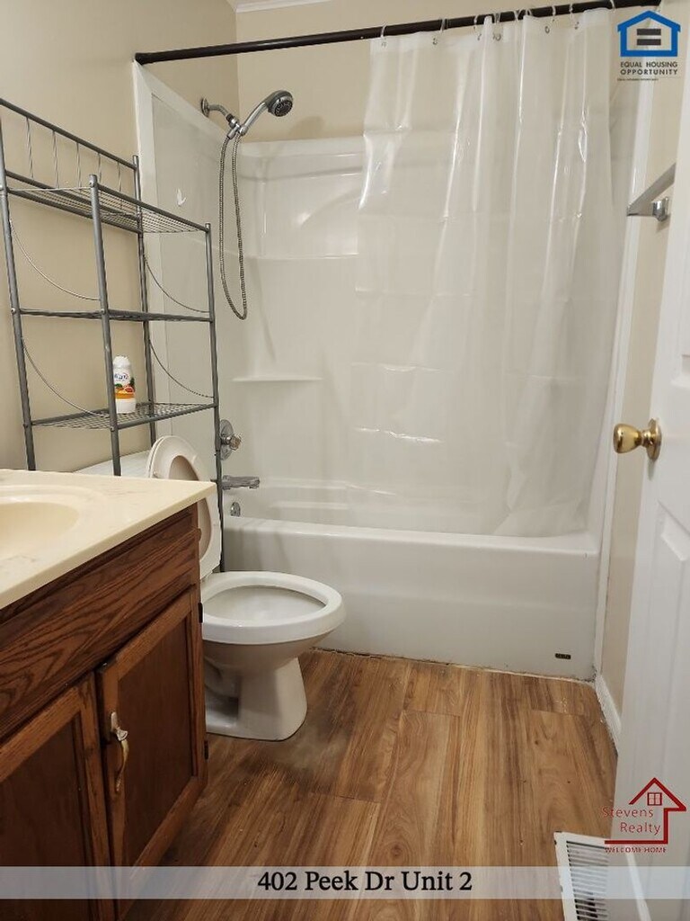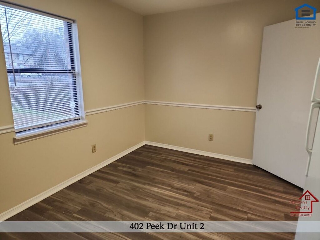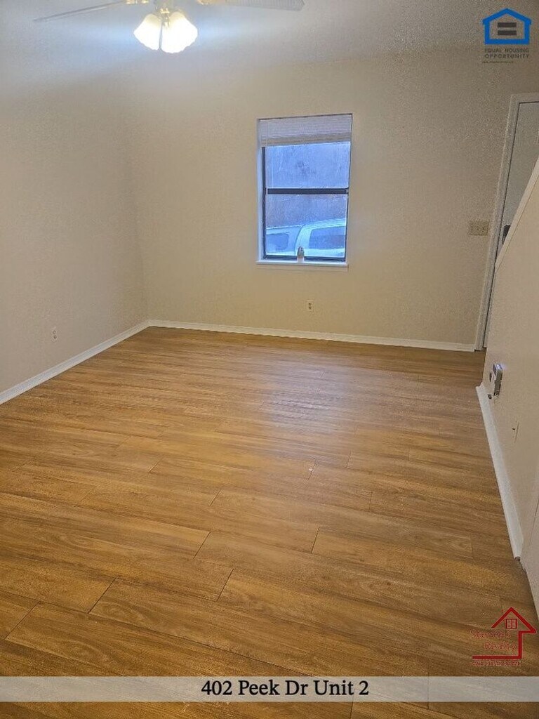 There is currently a 2 Bed 1 Bath Home for rent sq ft listed at 402 Peek Dr. It is Available Now.