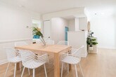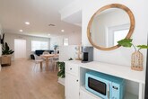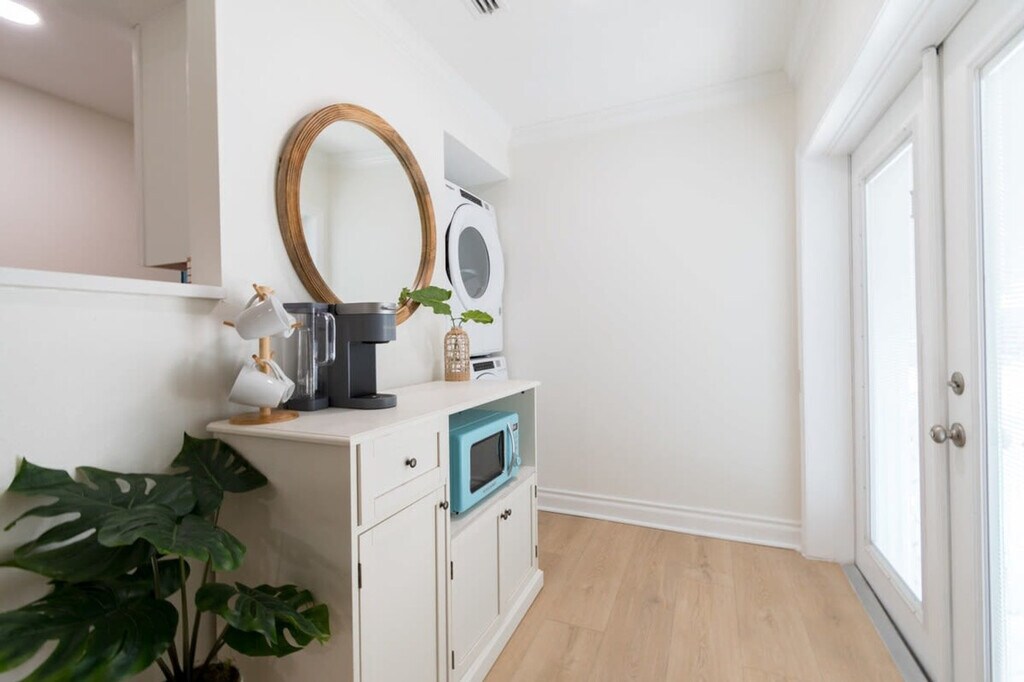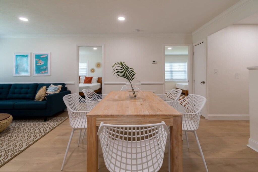Welcome to The Juni, a renovated 7-unit complex in the heart of Cocoa Beach, just steps from the sand. This Spanish House unit is a design-forward 2-bedroom, 1-bathroom apartment, perfect for your beach vacation. Enjoy easy access to famous local spots and the on-site pool, making it an ideal home base for sun-soaked days. This apartment features 2 bedrooms and 1 bathroom and is just steps from the beach in the heart of Cocoa Beach. Enjoy a design-forward concept and a fully equipped space for a comfortable stay. You can walk to restaurants, nightlife, cafes, and yoga studios, and have access to a pool. While we love all furry friends, only dogs are allowed at this property with a fee of $100 per pet per stay. Nestled in the heart of Cocoa Beach, The Juni offers the perfect blend of beachside bliss and vibrant coastal living. Embrace the surfing lifestyle with easy access to golden sands, renowned surf breaks, and epic rocket launches. Cocoa Beach caters to everyone, from seasoned surfers to sun-seekers, offering a lively local scene within walking distance, including dining options, quirky shops, and laid-back beach bars. Outdoor enthusiasts can enjoy paddleboarding, kayaking, and fishing in the Banana River or the Atlantic, or embark on scenic nature walks along the trails of Canaveral National Seashore. Located just a short drive from Orlando, The Juni is also an ideal base for exploring the famous theme parks and attractions of the area. Located just 4 blocks from downtown Cocoa Beach, the beach, shops, and restaurants are all just a quick walk or bike ride away. Uber and Lyft are also prevalent in the area. Guests are provided with an initial stock of essentials like paper towels, toilet paper, tissues, coffee pods, creamer, sugar, light cleaning supplies, garbage bags, sponges, dish soap, and dishwasher tabs. However, mailbox access is not available for guests. The apartment can accommodate up to 7 guests with 2 queen beds, 1 king bed, and a trifold floor mattress. A refundable security deposit or the purchase of a damage waiver is required for all reservations. [SI]