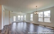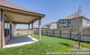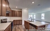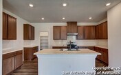 This stunning one-story home features a beautiful stone fireplace in the great room and 9-ft. ceilings throughout. The kitchen boasts stainless steel Whirlpool appliances, Woodmont Cody 42-in. upper cabinets, Emser Catch glossy tile backsplash, breakfast bar, and Moen Sleek faucet. The primary bath includes a garden tub/shower combo with Emser Cabo tile surround and a dual vanity. Enjoy the outdoors on the extended covered patio. Additional windows let natural light flow into the home Close to military bases, shopping, dining, entertainment, tourist attractions and in one of the most desirable suburbs of San Antonio, your search has ended. Come visit 402 Saddle Haven today and see where your new beginning starts.