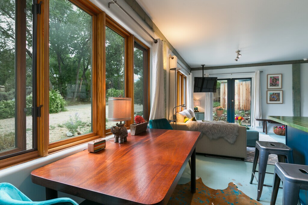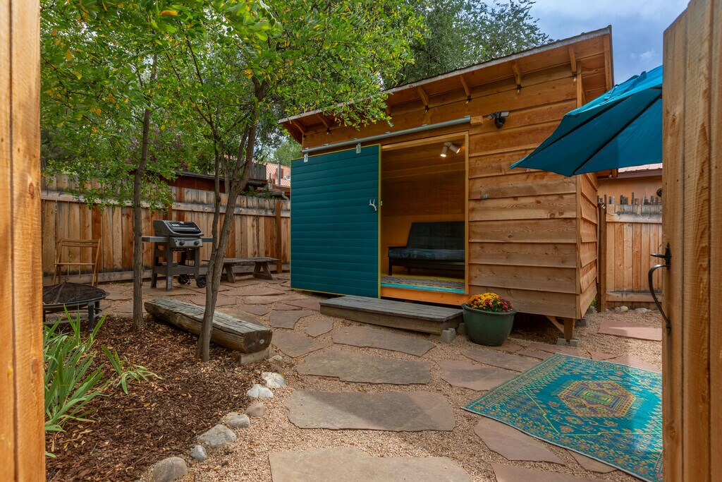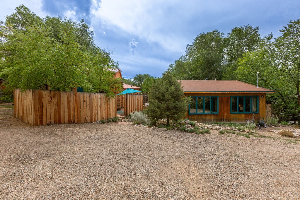 Turnkey 1BR Standalone Casita with a Party Patio- Steps from Taos Plaza! This is more than a home, it's a fully furnished, move-in-ready Taos Experience. A true Unicorn in the heart of town, this private casita is filled with natural light, artistic flair, and Northern New Mexico soul. Thoughtfully renovated and COMPLETELY APPOINTED, the home is being offered fully furnished, featuring a handpicked collection of works by some of Taos' most beloved local artists- no imports, no replicas, just real local talent. This sweet gem has everything you need- a fantastic kitchen with diner bar topped with the coolest countertops, new appliances and loads of storage. The efficient layout and use of space has afforded room for everything- a living room, a dining area, a sleeping nook, THREE closets and a luxurious bath with full sized front-loading washer and dryer. Just outside the house is a fully enclosed private party patio with a deluxe shed equipped with power. Many, many options for what you could do with this space and this new, well-built, weather-proof shed. There is a currently a grill and some lounge-y furniture and this generous outdoor entertaining area is surrounded by a tall privacy fence! Trujillo is a quiet, dead end street and just a short jaunt from the Plaza and all that town has to offer. Close to shops, galleries, restaurants, bars, concerts at Kit Carson park. This property is also moments away from Sunset Park, an urban green-space oasis. This location is a fun mix of urban convenience and serene nature. From furniture to fine art, every detail has been chosen with care, creating a turn-key sanctuary that's truly one-of-a-kind. All utilities are included, mini splits for heat and cooling and high speed internet. This home is being represented by Digs Property Management and is available through 5/31/26; deposit equal to one month's rent due at lease signing; first and last month's rent due at move in, no exceptions. Response to inquiries and showings by appointment will be accommodated M-F, 9-4.