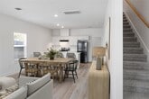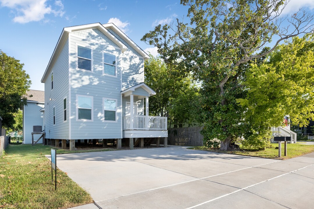 Centrally located on Galveston Island,this 4-bedroom,2.5-bath home offers tall ceilings,an open-concept layout,and a first-floor primary suite. The kitchen features wood cabinetry with quartz countertops,while impact windows,vinyl plank flooring,and central air and heat add comfort and efficiency. Off-street parking for up to 3 compact cars makes island living even more convenient. MLS# 14879941