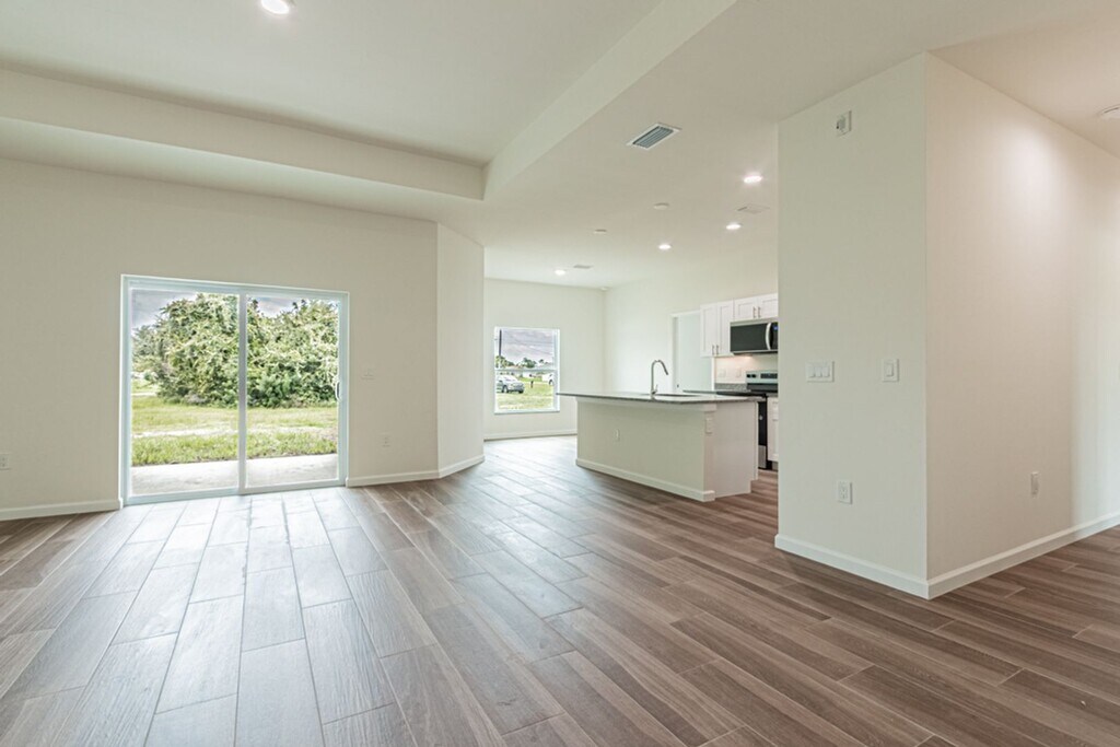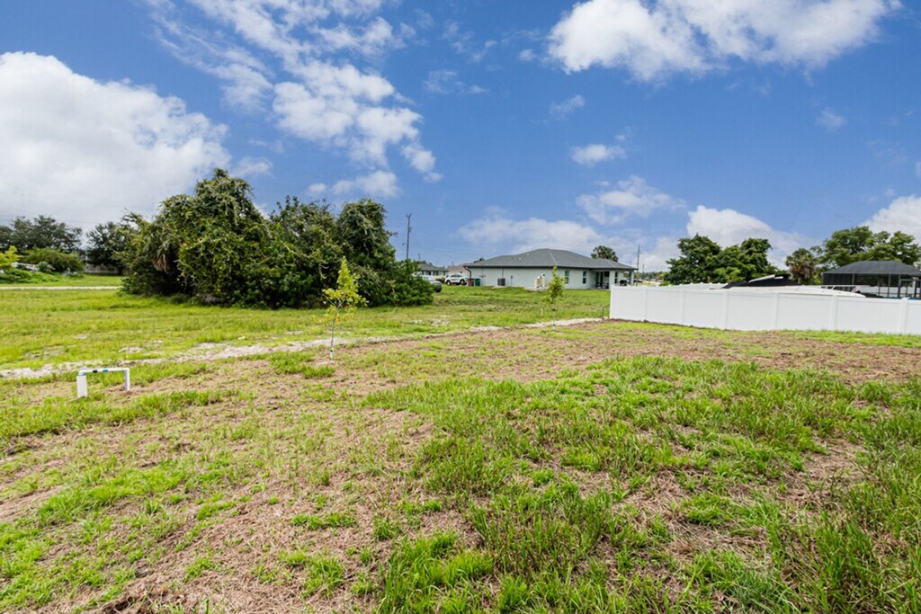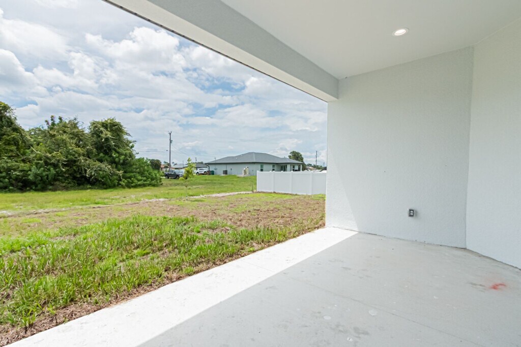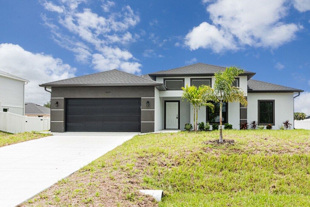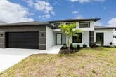 Welcome to your dream home in the heart of Cape Coral, FL! This brand new, custom-built, single-family home boasts four spacious bedrooms, three full bathrooms, and a two-car garage with an access door and opener. The large kitchen, complete with granite counters, wood shaker cabinets, and a large island, is perfect for entertaining. The home features all tile floors throughout, adding a touch of elegance and ease of maintenance. The primary suite is a true retreat with his and hers closets and an en-suite bathroom featuring dual vanities and a large tiled shower. An additional primary suite also includes a full bathroom, offering ample space for guests or a home office. The home is nestled on a large quarter-acre lot, providing a serene setting for you to enjoy. The large covered lanai is perfect for outdoor relaxation, and the open front porch welcomes you home each day. With storm protection-impact windows, this home is move-in ready and waiting for you. Pets are also welcome in this friendly neighborhood. Don't miss out on this great location in Cape Coral - see it today!