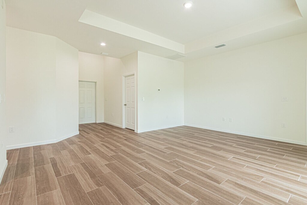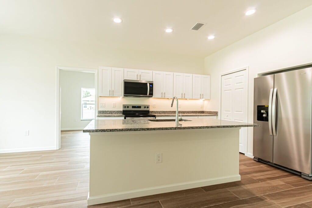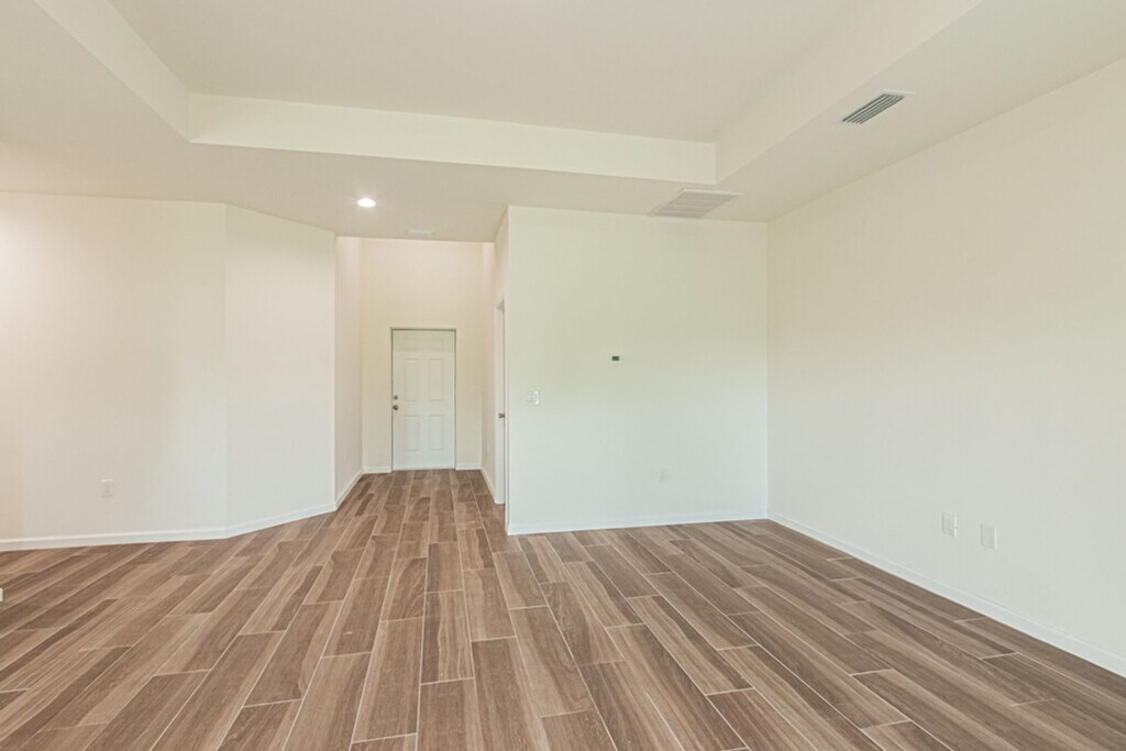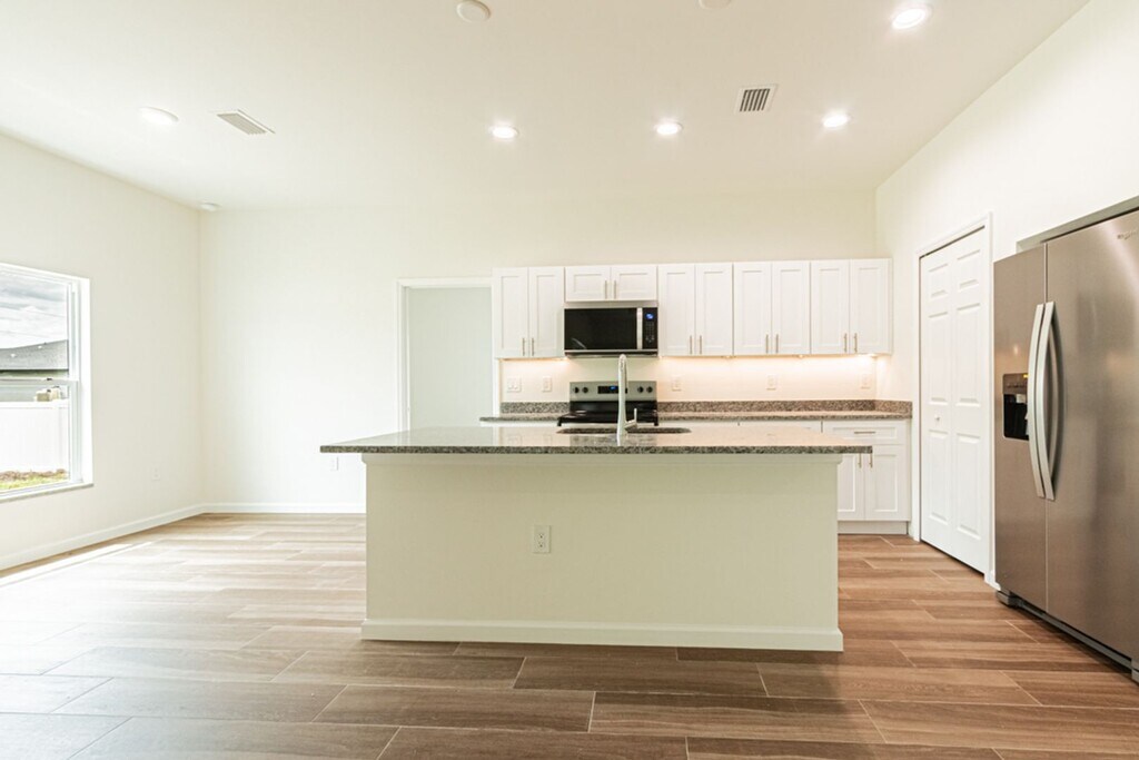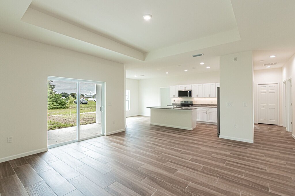 Welcome to your dream home in the heart of Cape Coral, FL! This brand new, custom-built, single-family home boasts four spacious bedrooms, three full bathrooms, and a two-car garage with an access door and opener. The large kitchen, complete with granite counters, wood shaker cabinets, and a large island, is perfect for entertaining. The home features all tile floors throughout, adding a touch of elegance and ease of maintenance. The primary suite is a true retreat with his and hers closets and an en-suite bathroom featuring dual vanities and a large tiled shower. An additional primary suite also includes a full bathroom, offering ample space for guests or a home office. The home is nestled on a large quarter-acre lot, providing a serene setting for you to enjoy. The large covered lanai is perfect for outdoor relaxation, and the open front porch welcomes you home each day. With storm protection-impact windows, this home is move-in ready and waiting for you. Pets are also welcome in this friendly neighborhood. Don't miss out on this great location in Cape Coral - see it today!