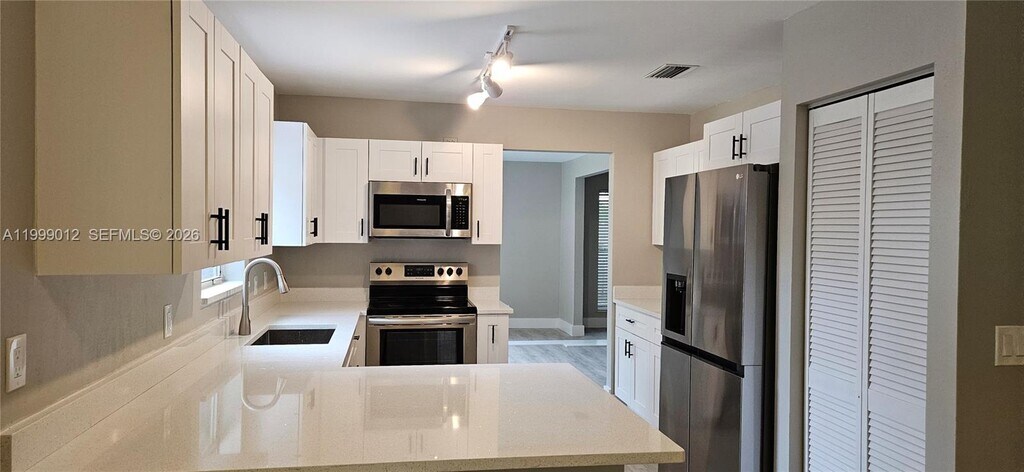Beautiful single-family pool home. Beautiful updated kitchen with quartz countertops. 2 Car garage. Home has 4 bedrooms and 2 full bathrooms upstairs and half bath downstairs. All bedrooms on second floor. Master bedroom has vaulted ceilings and has French doors to access second bedroom, which can be an office, baby’s room or exercise/meditation room. Newer carpet on second floor, waterproof laminate on first floor. Enjoy the pool on a hot summer day and the pool's jacuzzi on hot summer nights. AC is less than 2 years old. Screened patio. Accordion shutters. Home is across the street from Banyan Creek Elementary and less than 4 miles away from the lovely night life, beach and upscale restaurants found on Atlantic Ave. Pool and landscaping services included in rent. Comcast basic cable included. No pets. MLS # A11999012