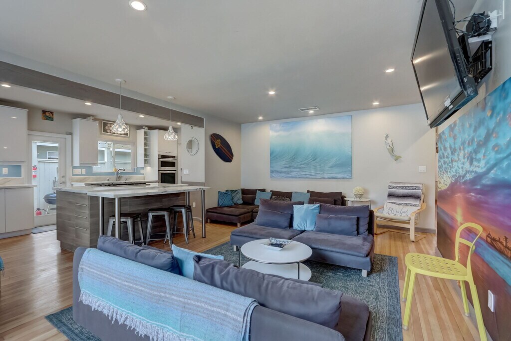 "PACIFIC BEACH Mermaid" PRIMO "PB" LOCATION! Video: More Photos: 4 Bedrooms, 2 Master Bathrooms, Fully Furnished and Fully Serviced Home. In the Heart of “PB” Steps & Blocks to: • MISSION Bay, Crown Point Shores BEACH Park, bike paths, BBQs, Fire pits • MISSION BEACH • Across the BAY to SeaWorld • "PB" Restaurants & Bars • 95+ Walking Score ENTERTAIN in 2024 NEWLY REMODELED: • Open Concept • Outside w/ 2 Patios • 2 BBQ • Fire Pit • Beach Yard • Modern • Comfy & Roomy ENJOY! Clean, Comfy, BIG • 4 Bedrooms • 2 PRIMARY Bathrooms • 10 REAL Beds – Sleeps 16 Total PACIFIC BEACH: Steps 2 Mission Bay, CROWN POINT 4.53 · stars 260 reviews San Diego, California, United States Entire home hosted by Laura 16+ guests 4 bedrooms10 beds2 baths Learn more about the host, Laura. Great for remote work Fast wifi at 499 Mbps, plus a dedicated workspace in a common area. Self check-in Check yourself in with the keypad. Great location 95% of recent guests gave the location a 5-star rating. "Pacific Beach Mermaid" PRIMO LOCATION! Two blocks to Mission Bay, Crown Point Shores, beach, bike paths & minutes from SeaWorld, restaurants & shops. Heart of “PB”, entertain: *NEWLY REMODELED, open concept, patio, beachy yard, Modern, comfy, entertainment home. ENJOY! 4 Bedrooms, 2 MASTER Bathrooms 10 REAL Beds – Sleeps 16 Total Entertain family & friends outdoors, BBQ, fire pit, quiet beachy neighborhood, 95+ walking score, super cool grocery stores, bars and restaurants! *Bedrooms – 10 REAL Beds Type – Sleeps 16 Total in REAL BEDS *Trundle Beds are normal beds with real mattresses and frames with an additional mattress/frame underneath the bed that rolls out from the right or left for an additional REAL bed (not a pull out couch or futon). •Bedroom 1 – Master Suite with Spa Master Bathroom - 1 Queen and 1 Queen Trundle Beds (Sleeps 4) •Bedroom 2 - Front of House - 1 Queen and 1 Queen Trundle Beds (Sleeps 4) •Bedroom 3 - Back of House - 1 Queen and 1 Queen Trundle Beds (Sleeps 4) •Bedroom 4 – Back of House - 2 Twin Beds and 2 Trundle Twin Beds (Sleeps 4) •Living Room, 4 Comfy Sofa as Deep as a Twin Bed (Sleeps 4) NOT IN REAL BED COUNT *We have a variety of mattresses and pillow construction, i.e. Tempur-Pedic (foam), spring, foam, Sleep by Number and spring and firmness so I can direct you to the best bed for your needs. *For your personalized comfort, we have blinds and curtains in each bedroom, extra blankets, two ceiling fans and floor fans. Two MASTER BATHROOMS The Entire Home You can ALWAYS reach me DAY or NIGHT by phone if you need anything! Text is the fastest method. . After a tour of the house or your check-in, I will check-in on you to see if you have any questions. Please let us know, resolve and/or fix anything immediately. If you prefer we wait until after your stay no problem just let us know immediately so we may schedule the proper resources. Feedback is acted on immediately. Thanks for your feedback and enjoy your stay! Grocery stores Crown Point restaurants SeaWorld and attractions discounted tickets BEFORE YOUR STAY To enjoy your vacation attached are the agreed contract, house tips, access instructions and super local beaches, activities, attractions and food/drink recommendations to ensure your stay is FABULOUS and comfortable. (These instructions are also located at the house in a binder with activities brochures, info. sheets and menus.) Yes, we would love to host your doggies on your family and friends’ vacation! As they are your best friends! My “Pacific Beach Mermaid” home is ideal for pets as we have two separate areas that are enclosed: *Dog Run - We have a dog run in the back of the home. Enclosed Patio - We also have a side enclosed porch where you can hang out together with a sectional couch and dining tables. *Front Yard - The front yard has a beachy yard/garden, a patio, fire pit, chairs, dining table but not enclosed. *Blocks to Mission Bay - We are two blocks from the Mission Bay and Crown Point Shores with a beach and park for dogs to run. Dogs must be on leash. There are dog parks and dog beaches (closest Ocean Beach & Fiesta Island) nearby too. Dog Beaches *Dog Beach - Ocean Beach (24 hr. off-leash) - located at the west end of Voltaire St., this off-leash dog beach is one of the most popular in San Diego *Fiesta Island - Mission Bay Located in Mission Bay Park, dogs are allowed in all areas except for the Youth Campground and Least Tern nesting sites (seasonal). Daily 6:00 am - 10:00 pm, this area offers calmer waters than the ocean and sand dunes to run on. *North Beach Dog Run - Coronado (24 hr. off-leash) - located on Ocean Blvd. near Sunset Park at the northern end of the beach next to the U.S. Naval Station entrance. Dogs must be leashed until you reach the beach. Foot shower and free dog litter bags at the entrance to the run. *Del Mar Dog Beach - Del Mar (post-Labor Day thru June 14 off-leash) - located at Via De La Valle and Highway 101 at the rivermouth. off-leash area is north of 29th St. The monthly rent is $150 per daymonth and a $150+tax hypoallergenic cleaning (+mandatory tax) so guests who are allergic to pets may enjoy the home too. Pet owners agree to not leave out dog food inside and outside and to clean the waste up immediately for sanitary reasons. My housekeeper will charge you $? per pile fee to clean up after your dog. I also can provide doggie (and baby) sitting for approximately $? per day. We’d love to host the entire family. Enjoy! Cheers, The space Entertain family & friends in Pacific Beach, Quiet Crown Point Neighborhood • NEWLY REMODELED • Open concept • Outside with Patio • BBQ • Fire pit • Beach yard • Modern • Comfy 95+ Walking Score, super close and cool grocery stores, bars and restaurants! “Pacific Beach Mermaid” Entertainer Bedrooms NEW Bedrooms – 10 NEW REAL Beds Type – Sleeps 16 Total (With individual door codes) Trundle Beds are normal beds with real 