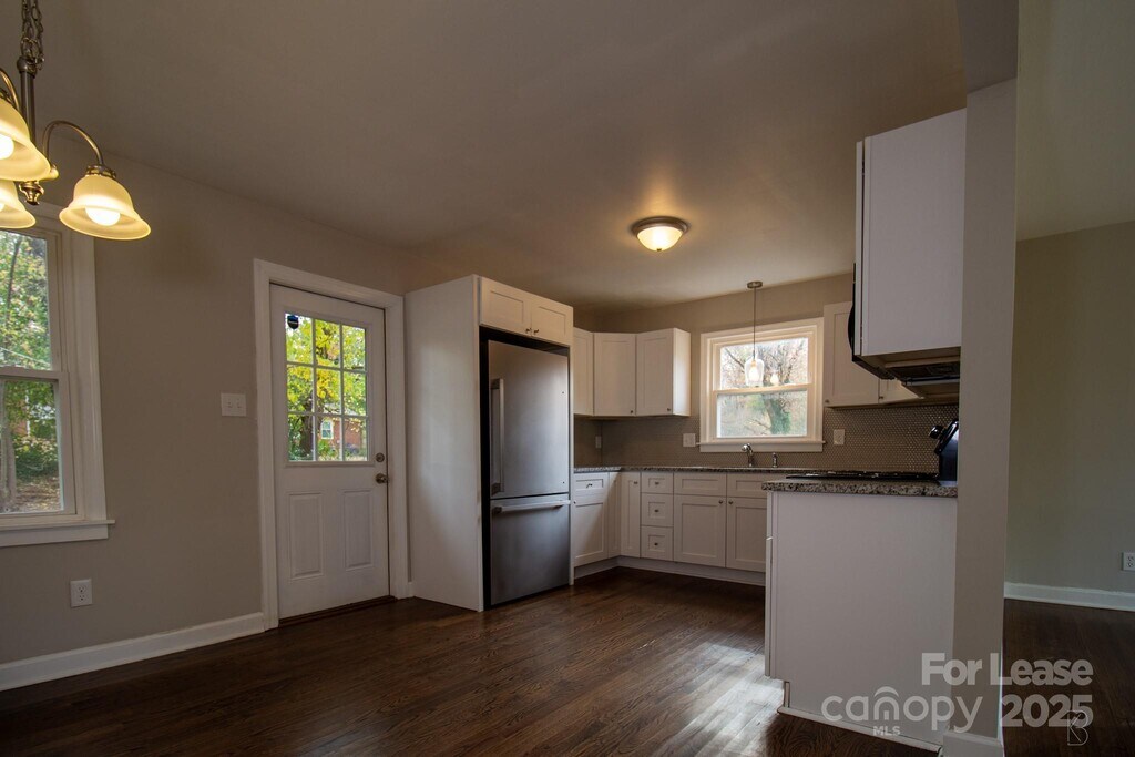 Cozy renovated 3 bed,1 bath in BOOMING Clanton PARK. Open floor plan. Minutes away from South End,77,shopping,bus line,Uptown. So many updates in this home - kitchen cabinets,granite countertops,kitchen backsplash,stainless steele appliances (electric stove,dishwasher,microwave),tile in bathroom,shower and laundry area,updated bathroom vanity. Refinished hardwood floors throughout. Updated light fixtures,Stackable washer/dryer off bathroom with functional pocket door. Ample natural lighting. Utility room out back with storage,gravel driveway. Fenced in yard.