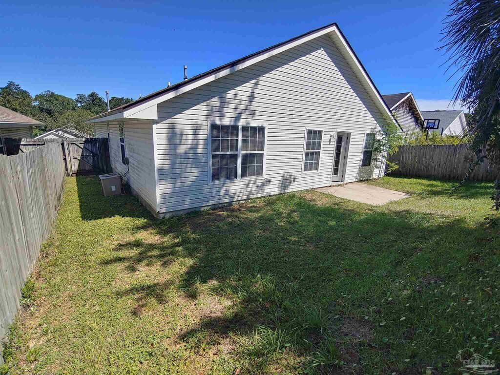 Welcome to this nice 3BR/2BA home located in Pensacola. This home boasts a split bedroom floor plan,providing ample privacy and space. The master suite is a true retreat,featuring a large walk-in closet and a double vanity in the bathroom. The other two bedrooms are also spacious and come with ceiling fans for added comfort. The heart of the home is the large living room,complete with a cozy gas fireplace and plant ledges for added charm. The kitchen/dining combo is perfect for entertaining,featuring an island for extra prep space. The home also includes an indoor laundry closet for convenience. The property comes with a 2-car front entry garage,providing plenty of storage and parking space. The home is equipped with central heat and air,ensuring comfort all year round. The privacy-fenced backyard is nice for small gatherings or outdoor activities. Small pets accepted with owners prior approval and a $325 non-refundable pet fee per pet (limit 2). No smokers. Roommates,if accepted,must qualify individually.