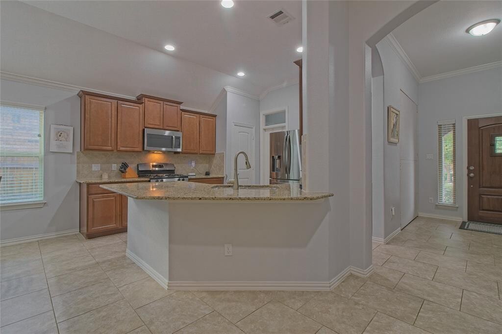 Welcome Home! Located in the highly sought-after Highlands at Mayfield Ranch, in Georgetown ISD. With easy access to toll roads and close to shopping and dining, this home has it all. Tucked beside a cul-de-sac and within walking distance to amenities. This house has been meticulously maintained and provides an abundance of natural light. The open floor plan connects the kitchen to the dining area and through to the family room making for easy entertaining. Off the kitchen area is a bonus room that can be used as an office, an extra bedroom (minus the closet), or even a formal dining area. The owner's suite is tucked at the back of the home separate from the other two bedrooms. All bedrooms have ceiling fans. Carpet only in bedrooms and tile throughout. Covered patio plus extension. This is a non-smoking home and pets are negotiable. Washer and dryer along with refrigerator are included. Come check it out - call to schedule a tour today. MLS ID 7038923