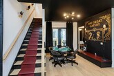Step into 1920s glamour at this stunning speakeasy-inspired retreat! This elevated 4-bedroom, 3-bathroom home boasts a unique round king bed, custom Dolly Parton mural, mini faux stage, and poker table. Unwind in the private patio with hot tub and grill, or head up to the rooftop deck with comfortable seating, fire pit, and gorgeous views. Located just 5 miles from Broadway in the trendy Nations near Sylvan Park, this home is thoughtfully designed for groups of 10 seeking Nashville charm with Great Gatsby elegance. On the first level, you'll find a full-sized bed with an en-suite full bathroom featuring a shower/tub combo, a fully stocked brand new kitchen, a living room, a poker area with a stage, and an outdoor patio with a hot tub and picnic tables. The second level includes a queen-sized bed, a Jack and Jill full bathroom with a shower/tub combo, and another queen-sized bed. The third level offers a king bed and two twin hotel-style rollaway beds with an en-suite full bathroom, walk-in shower, double vanity, and large walk-in closet. The rooftop deck features a wet bar, fire-table, and soft seating. The Nations/Sylvan Park neighborhood is located 10 miles southwest of downtown Nashville, brimming with locally-owned restaurants, bars, and shops. It's less than a mile from a variety of restaurants, shops, and cafes, and just half a mile from popular spots like Fat Bottom Brewing, Double Dogs, Five Points Pizza, L & L Market, Bearded Iris Brewing, and Another Broken Egg Cafe in Sylvan Heights. Nearby attractions include Sylvan Park and McCabe Golf Course, Broadway/Bridgestone, Music Row, 12 South, and the Grand Ole Opry. The BNA Airport is just 23 minutes away, and Lyft and Uber are readily available for convenient transportation. Unapproved visitors, events, or parties may result in early checkout and additional fees of $500 or more. Exterior cameras are used for safety and property protection. No glitter or confetti is allowed, and decorations should not be placed on wallpaper. Smoking is not allowed inside or within 25 feet of the property, and a $500 fee will apply if smoke of any kind is detected in the home. Early check-ins or late check-outs must be pre-arranged, and non pre-arranged late check-outs will result in withholding of deposit. The only way to guarantee an early check-in or late check-out is if the night prior or after your stay is available, which can be blocked off at half the price. We won't be on-site but are available 24/7 for assistance. Registration Number: