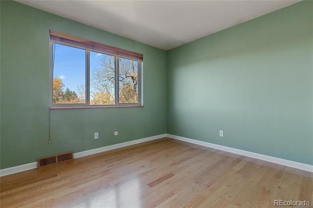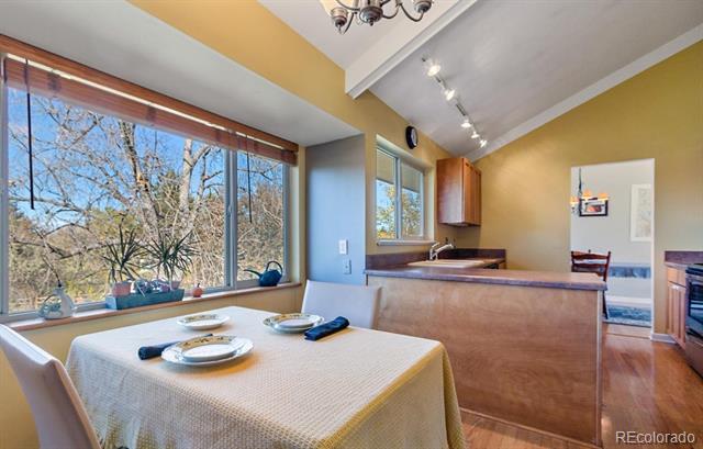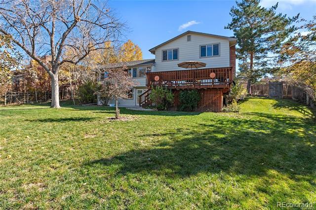 Hutchinson Hills split-level on an oversized 0.30-acre lot with mature trees and mountain views. Brick exterior with 2-car garage and raised garden beds greet you at the front. Inside, the updated kitchen features maple shaker cabinetry, stainless appliances, laminate countertops, peninsula seating, and hardwood floors that flow into the sunny kitchen nook — a vaulted dining space with large picture windows overlooking the treetops and Rockies. Three bedrooms on the upper level including a primary suite with ceiling fan and en suite ¾ bath featuring tile surround shower, terracotta tile counters, and glass enclosure. Two secondary bedrooms with hardwood floors and ample natural light share a full hall bath. Main-floor laundry room with full-size front-load washer/dryer, upper cabinets, and pantry storage. Walk-out lower level offers a spacious family room with French doors to the backyard. Large rear deck with built-in bench seating is perfect for entertaining above the expansive, fenced backyard with mature landscaping. Minutes to Rosamond Park, Cherry Creek State Park, DTC, and the Dayton light rail station. Available now Base Rent: $3,300 Water/Sewer/Trash: Tenant will set up and pay Xcel: Tenant will set up and pay Yard Care: tenants are responsible Single Family Residence MLS# 7966880