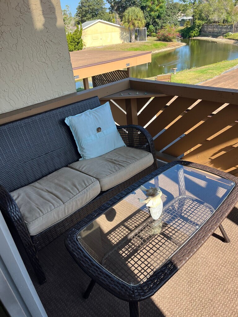 Recently painted and refurnished condo in Beacon Lakes. Located near I19 and Rt. 54 in New Port Richey. This unit is better than new! Beautiful, comfortable, feels like home! Hardwood floors Hurricane impact resistant windows Security screen door New slider in kitchen leading out to a balcony Cherry cabinets, completely stocked with your everyday needs. Granite countertops in kitchen and bathrooms Duel flush toilets Glass enclosed shower in master bathroom Tub/shower in second bathroom Comfortable king size bed in master and queen bed in second bedroom Washer and dryer in unit Enclosed lanai overlooking the lake, tinted vinyl windows with screens, a bird lovers paradise! New air conditioner and heater Trash, water, sewer, basic cable and internet included. Upgrade at your expense if you want more than the basic package Carport parking for one vehicle, overflow parking for an addition vehicle. Contact me to arrange to see the unit. Application is required by the HOA, background check. First and last months rent, deposit and cleaning fee required No pets No smoking of any kind Must be 55 years of age or older Upstairs unit, stairs, no elevator. Looking for 1-2 year lease. Long term tenant only, not seasonal.