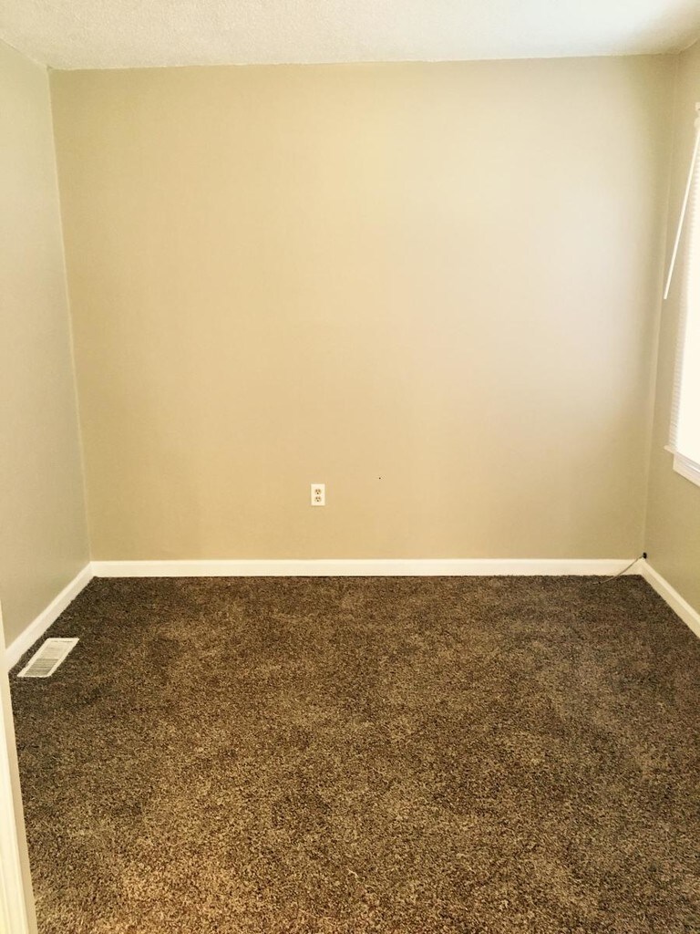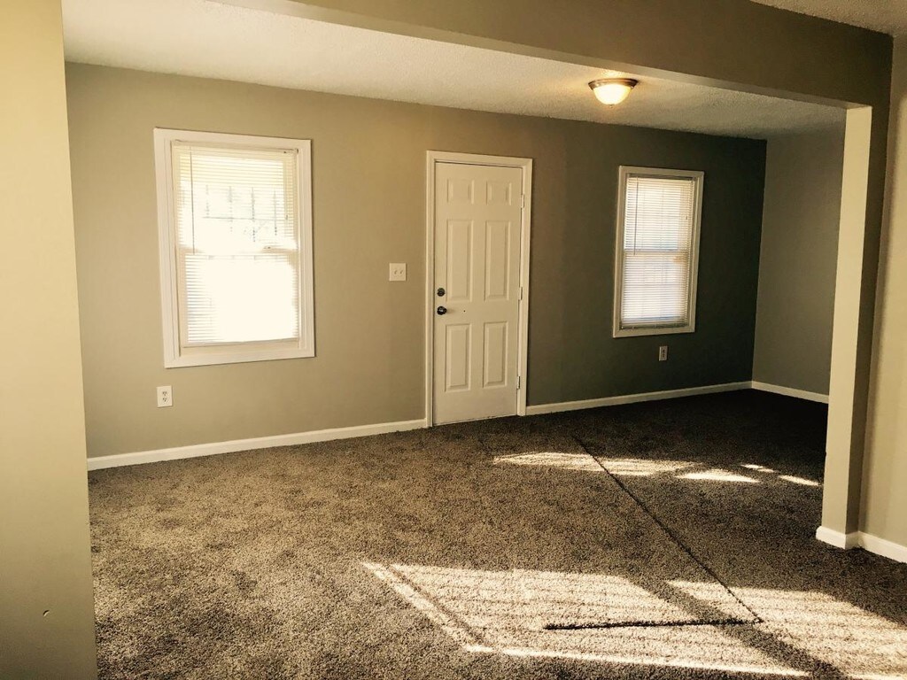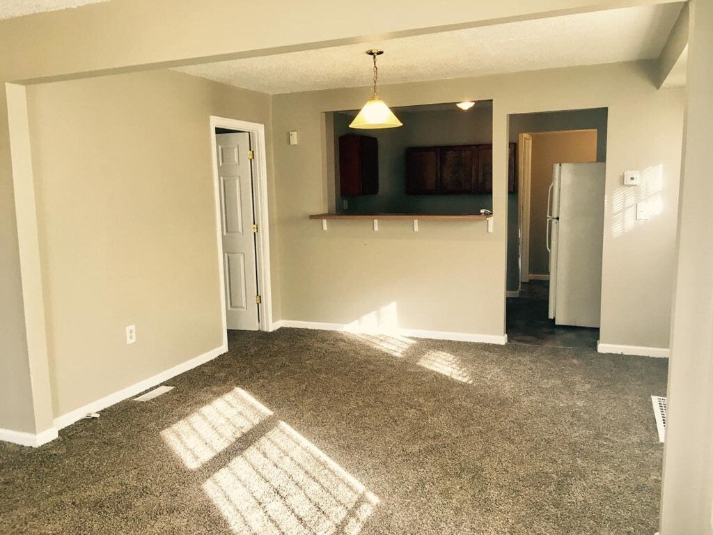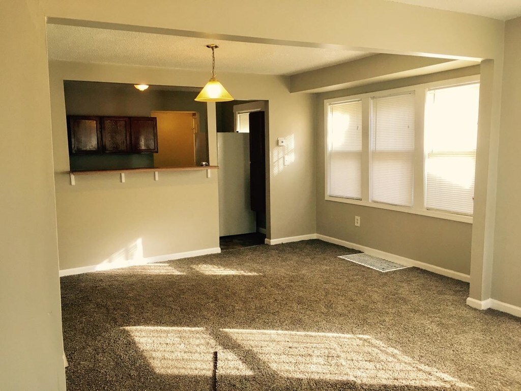 Great house with fresh paint and carpet throughout! All Electric! No Gas Bill! Enjoy an open concept with large living room, separate dining room and open kitchen. Bar space in the kitchen, with a fridge and stove provided! Two bedrooms, the large one comes with two closets! Nice front porch for Spring and Summer. Large backyard with off-street parking and empty lot next door for the kids to play! Easy access to highways. Basement for extra storage. All electric, you don't have a gas bill! Tenant only pays water/sewer and electricity. **Full deposit and $100 administrative fee due upon application approval.** Serious inquiries only, please no pets.