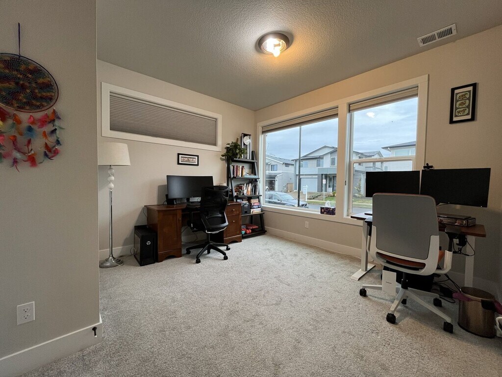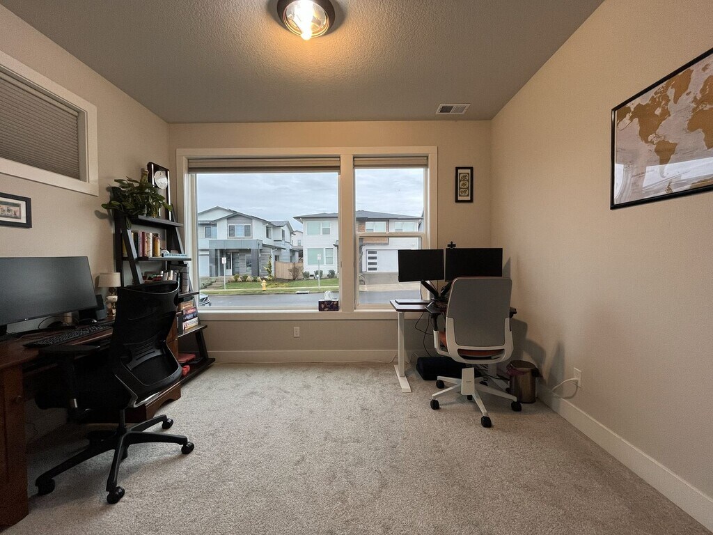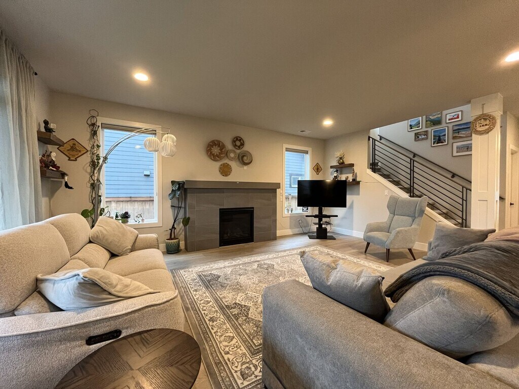 This stunning newer-construction 5 bedroom home, built by Stone Bridge Homes NW, is located in the highly sought-after Reed’s Crossing community, known for its expansive green spaces, walking paths, and modern neighborhood design. Thoughtfully designed with both functionality and style in mind, this home offers generous living space, upscale finishes, and a versatile layout ideal for today’s lifestyle. The main level features a bright and open great room that seamlessly connects the living, dining, and kitchen areas, creating an inviting space for everyday living and entertaining. The kitchen is a true centerpiece, showcasing a large island, upgraded appliances including a 36" cooktop and built-in wall oven and microwave, designer cabinetry, and abundant counter space. Just off the kitchen is a dining nook and access to the covered patio, perfect for indoor-outdoor living. Also located on the main floor is a private guest suite with a full bathroom, ideal for visitors or multi-generational living. The home includes a spacious three-car tandem garage with an EV charging port, offering both convenience and future-ready functionality. Upstairs, you’ll find 4 additional bedrooms along with a secondary great room, providing flexible space for a media room, home office, or play area. The bedrooms are generously sized and thoughtfully arranged to maximize comfort and privacy. Additional highlights include exterior decorative lighting along the backyard fence, designer finishes throughout, and quality craftsmanship. This home offers a rare combination of modern design, upgraded features, and access to one of the area’s most desirable master-planned communities. Call or Text Our Leasing Agent to schedule a showing! English Speaking Spanish Speaking Visit our website to apply and view other homes we have available! Do you need property management services? Maximize your income and cut your costs!