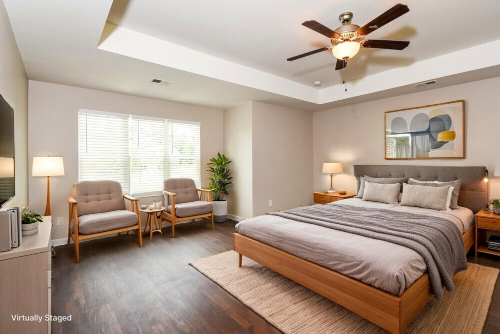 Please note, our homes are available on a first-come, first-serve basis and are not reserved until the lease is signed by all applicants and security deposits are collected. This home features Progress Smart Home - Progress Residential's smart home app, which allows you to control the home securely from any of your devices. Learn more at Want to tour on your own? Click the “Self Tour” button on this home’s listing or call to register for a self-guided showing at a time that works best for you. Some images have been virtually staged to help showcase the potential of spaces in the home. The furnishings shown are for illustrative purposes only and are not included in the home. Located on a tranquil street between Legion Lake and Crooked Creek, this four-bedroom rental home with 2.5 bathrooms in Douglasville, GA has an immaculate front lawn with a covered front porch that's perfect for relaxing in the shade. Featuring a door to the backyard, the living room has a gorgeous stone fireplace, hardwood floors, and a wooden ceiling fan with a dome light. The dining room, which has a large chandelier hanging from the ceiling in the center and a pair of windows offering a spectacular view of the yard, sits next to the kitchen through two arched entryways. You'll be amazed at the main bedroom's size and the premium cabinets, elegant lighting, and walk-in shower in the attached bathroom.