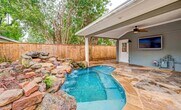 Stunning 3-bedroom,3-bathroom home with private pool. Desirable,safe,family-friendly Braeswood Place with patrol! This beautifully updated residence offers 2,130 sq ft of stylish living space designed for comfort and entertaining. Enjoy seamless flow between living,dining,and kitchen areas enhanced by gleaming indoor double-sided facing fireplace and wood-tile floors. STAINLESS STEEL APPLIANCES. REFRIGERATOR,WASHER,DRYER,and GENERATOR included. Two-car carport and dedicated front yard parking with street parking,driveway,and electronic private gate provide convenience and peace of mind. Low maintenance front yard and turf backyard. TOP-RATED SCHOOLS. Approximately 10-minute drive from the TEXAS MEDICAL CENTER and RICE UNIVERSITY,walking distance to 3 family friendly parks,Whole Foods,Starbucks,UPS,banks,pharmacies,and fitness centers. MLS# 25199506