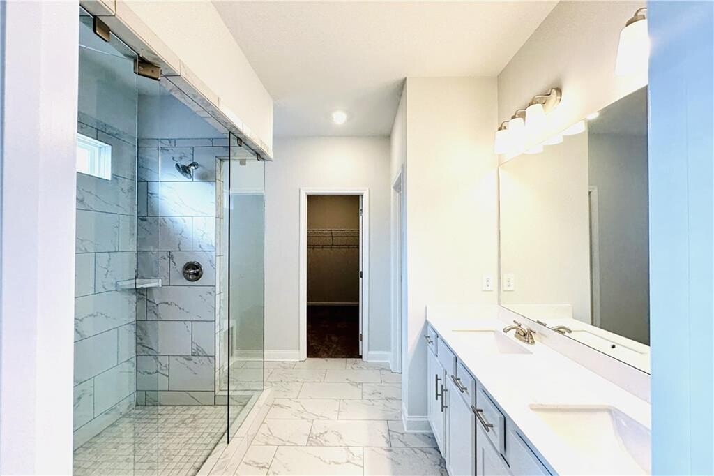 Welcome to this beautiful,like-new 4-bedroom,3- full bath home in the highly desirable Mill Creek school district. The bright,open-concept kitchen and family room feature a coffered ceiling and cozy fireplace,creating a warm and inviting gathering space. The gourmet kitchen showcases granite countertops,white cabinetry,stainless steel appliances,and a large island perfect for entertaining. A spacious guest bedroom and full bath on the main level offer convenience. Upstairs,the luxurious primary suite includes a tiled shower,dual shower heads,and double vanities,along with a large loft ideal for a media room or office. Enjoy fresh interior paint,EVP flooring on the main level,and an expansive unfinished basement that provides excellent storage. Relax on the rear deck overlooking a private,wooded backyard—the perfect retreat to call home. Amenities includes swimming pool,and nearby parks such as Little Mulberry Park and Duncan Creek Park. Quick access to I-85,minutes from Chateau Elan,Mall of Georgia,Shopping,dinning. Don’t miss this stunning house. Come see it! Available: December 1st.