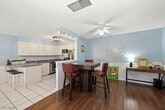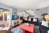 Light,bright,and beach-themed this cheery furnished 3-bedroom,2.5-bath home is designed for Florida living in a friendly,safe community with a heated pool. Downstairs,enjoy a spacious open living area with two comfortable sofas,a wicker reading chair,and a smart TV. Large sliding glass doors bring in natural light and open to an oversized,completely fenced private courtyard for added privacy. The courtyard is set up for outdoor living with a table,large umbrella,and a grill perfect for relaxing or dining outside. The dining area flows into a fully stocked kitchen with everything you need for cooking at home,plus a dedicated workspace to handle emails,remote meetings,crafting or however you decide to use the space. You'll also find a convenient half bath and an oversized laundry room on the main level. Upstairs are three bedrooms and two full bathrooms,offering privacy and a comfortable setup. Please note: balconies are for decoration only and are not intended for use. Conveniently located close to shopping,dining,and everyday essentials approximately 22 minutes to Fort Myers Beach and 17 minutes to downtown.