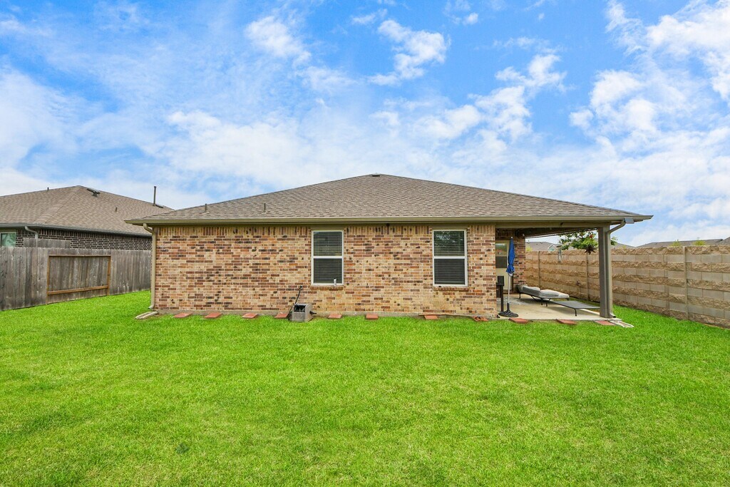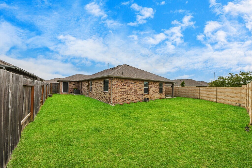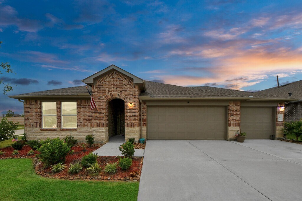 Welcome to this stunning 1-story home with 4 bedrooms,3 full baths,and a home office/study,built in 2023. The kitchen boasts a large island with quartz counters,open to the spacious living room with a charming faux brick accent wall. Relax on the covered patio and enjoy your fenced back yard. With a 3-car garage,there's plenty of room for vehicles or storage. Situated on a corner lot off Hwy 146 with easy access to 99,I-10,and Hwy 90. Enjoy community amenities like the Angel Lagoon,parks,and dog park. A perfect blend of comfort and convenience awaits you here. MLS# 48993784