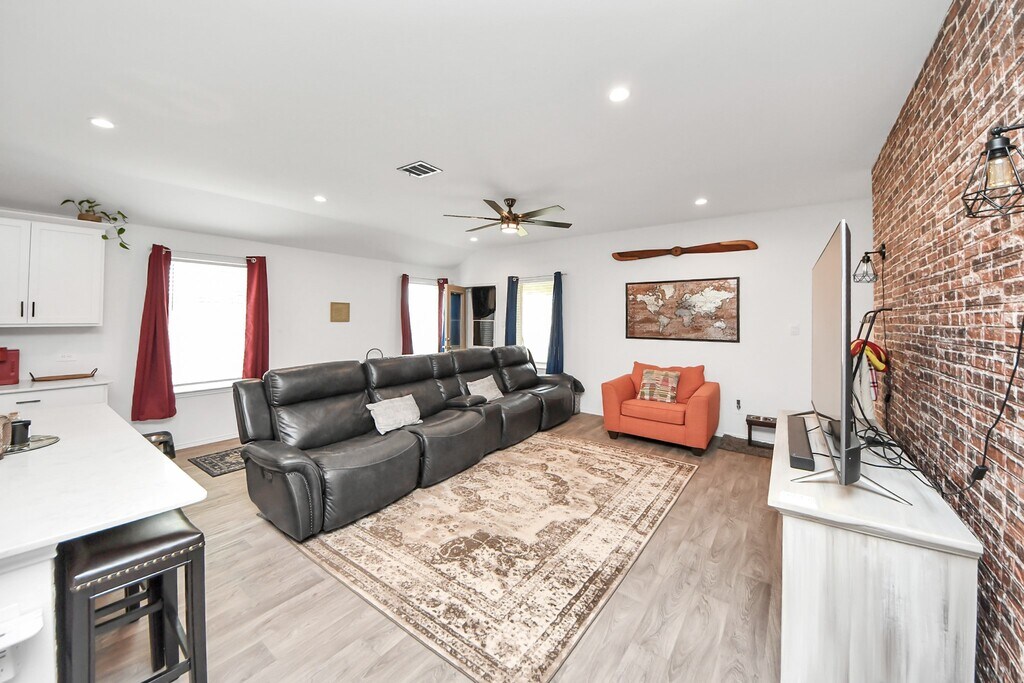 GayLynn MilliornWelcome to this stunning 1-story home with 4 bedrooms, 3 full baths, and a home office/study, built in 2023. The kitchen boasts a large island with quartz counters, open to the spacious living room with a charming faux brick accent wall. Relax on the covered patio and enjoy your fenced back yard. With a 3-car garage, there's plenty of room for vehicles or storage. Situated on a corner lot off Hwy 146 with easy access to 99, I-10, and Hwy 90. Enjoy community amenities like the Angel Lagoon, parks, and dog park. A perfect blend of comfort and convenience awaits you here.