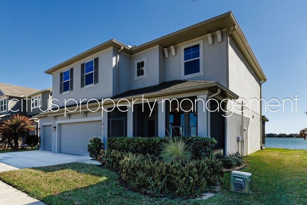 Welcome to Lake Life on the Clermont Chain! This beautiful home sits on a DOUBLE WATERFRONT lot with a private boat dock & electric lift. The screened front patio overlooks the boat channel and nature while the screened lanai runs entire back of the home with stunning water views. Light, bright and neutral throughout, including luxury vinyl plank and granite countertops and vanities make living the lake life a breeze. The beautiful kitchen features 42” cabinets, crown molding, stainless steel appliances with range hood, double oven, large island, and water’s edge views. The family room & dining room alongside the kitchen offer a wonderful entertaining space. The flex room on the first level can serve as an office, bedroom, or whatever you dream up, next to a full bathroom. In addition, you’ll find a spacious office space with double French doors, off of the front entrance. Upstairs, a large loft area can accommodate a second living space or game room. The primary bedroom, with ensuite bathroom, 2 guest bedrooms, and third bathroom are also found upstairs with a spacious laundry room. Community amenities include a pool, clubhouse that can be rented for larger occasions, basketball court, tennis/pickleball court, recently updated fitness center, BBQ grill, pool table, 2 playgrounds, disc golf practice, soccer goal, & expansive green space. This is the nearest gated community to Downtown Clermont where you'll love exploring all the dining, shopping, entertainment, and more. This home offers a lifestyle second to none. Call today!