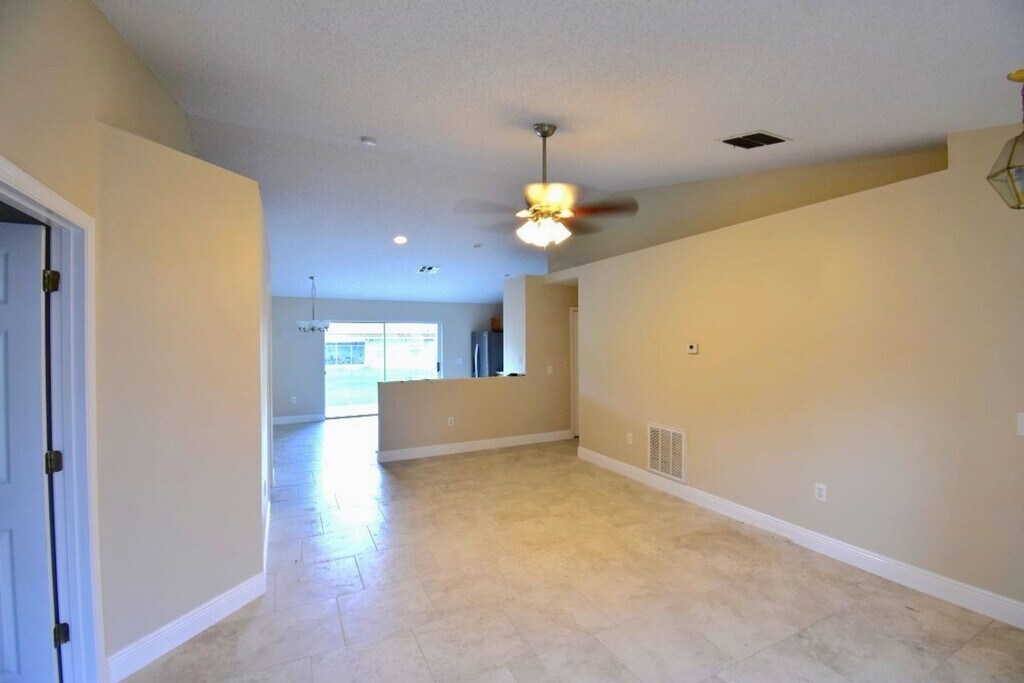 Spacious 3 Bedroom 2 Bath + Den – Close to shopping. This home has porcelain tile flooring throughout all high traffic areas, and plush carpet in bedroom. – Over 1,400 sqft Split bedroom floor plan with separate den – Vaulted ceilings - Eat in kitchen with pantry – ceiling fans throughout – 2 car garage with opener. Easy access to shopping, restaurants, Library, and Elementary School. The Poinciana Community Center is nearby … which offers a pool & fitness center at very reasonable rates. This home is ready for a new tenant! Call today for an appointment to see this charmer.