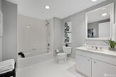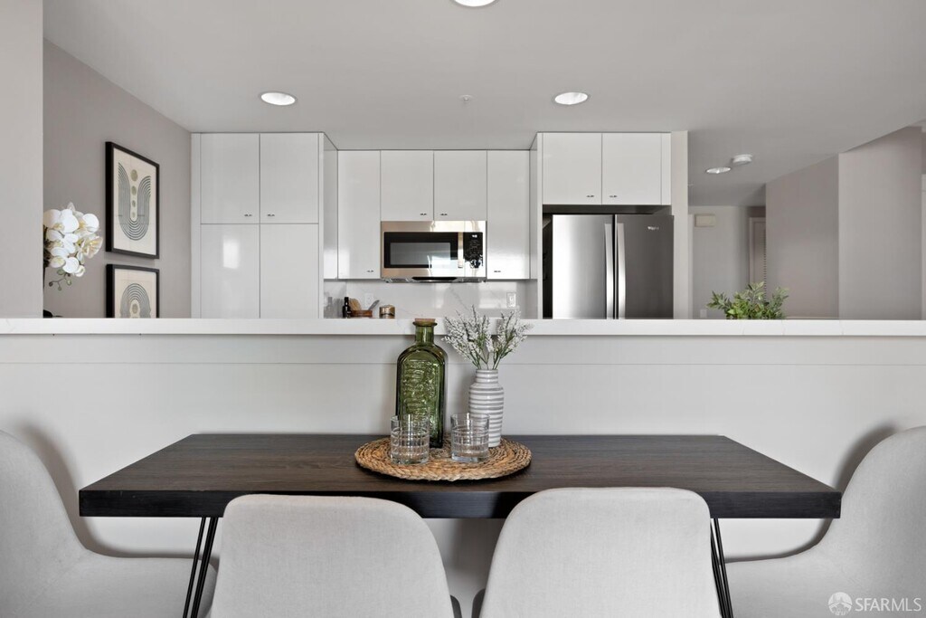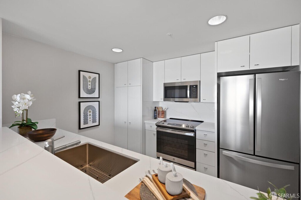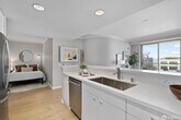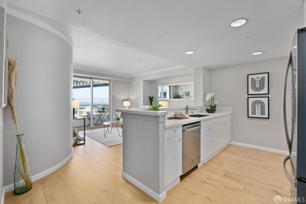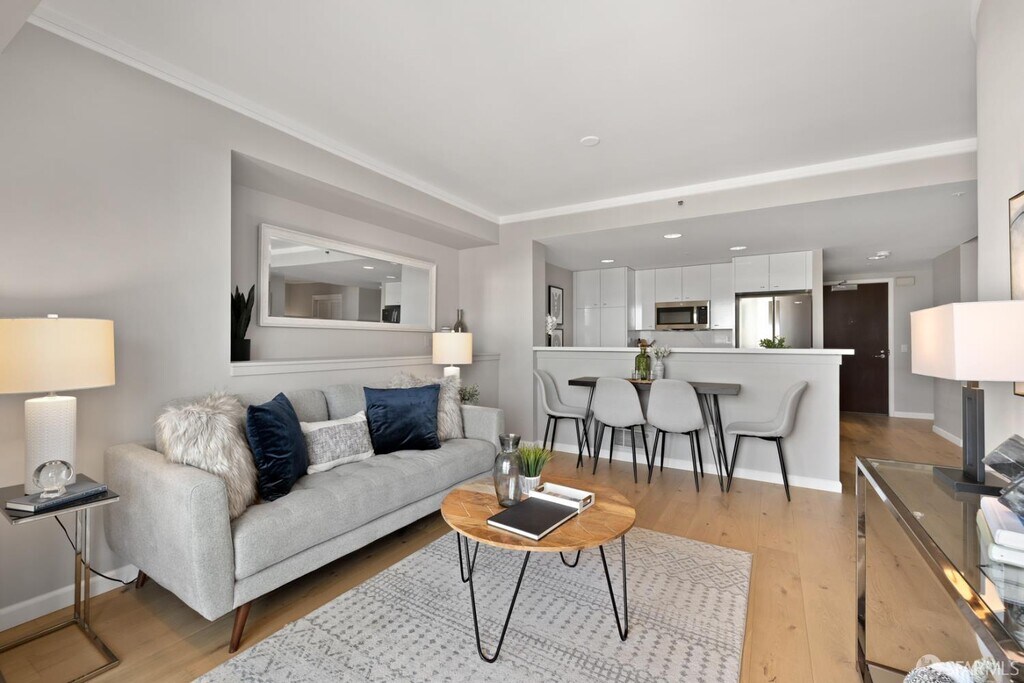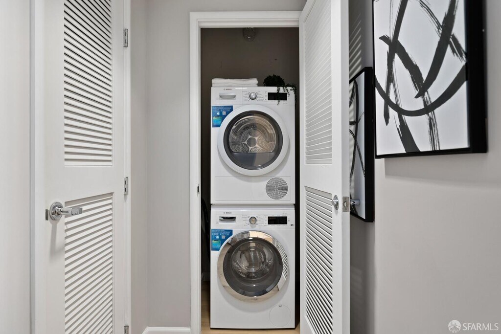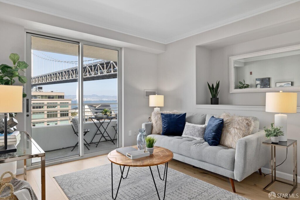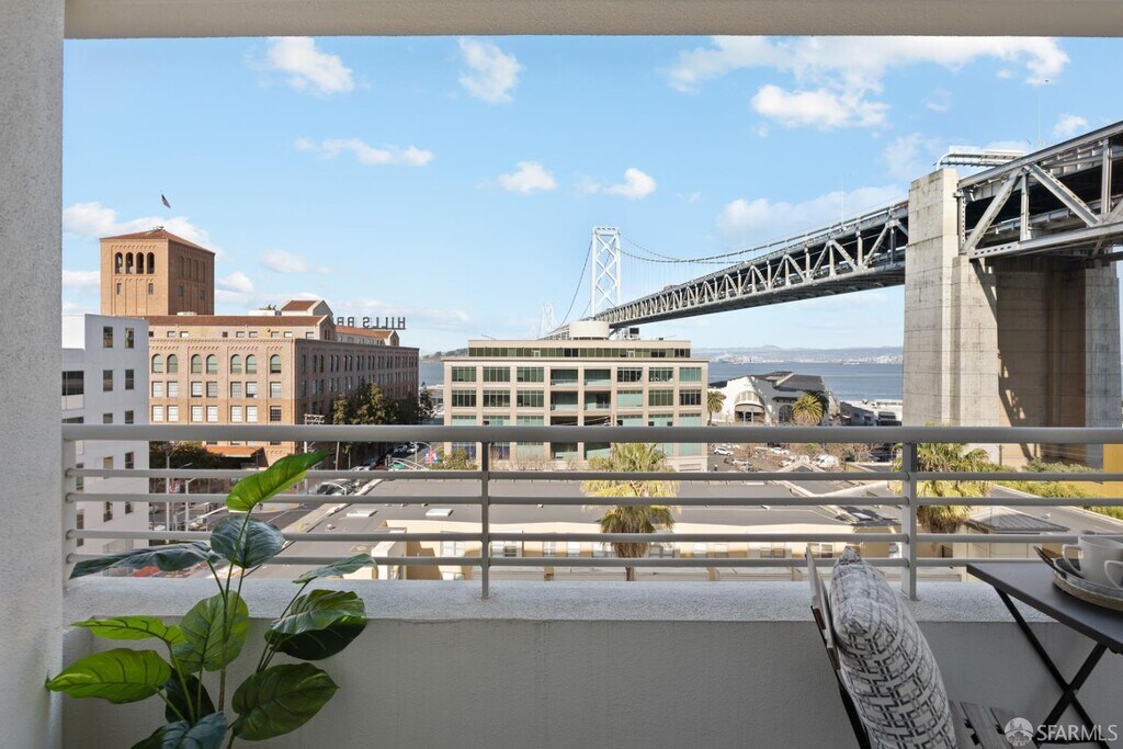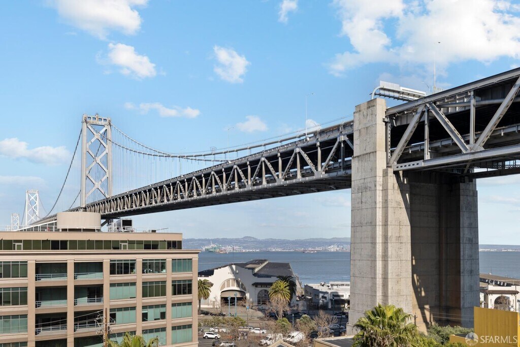 Amazing Bay Bridge Views from living room and patio. Light-filled Jr.1 bedroom, 1 bathroom condo at The Portside in sunny South Beach neighborhood. Freshly painted with brand new wide-oak hardwood floors. The large window has views of water and bridge where you can watch the sailboats drifting by the day as well as enjoy the captivating bridge light show at night. Well-equipped kitchen with new custom countertops and backsplash plus all new stainless appliances. In-unit laundry, new washer/dryer. Sleeping alcove with a walk-in closet. The Portside is a well-managed condo community with luxury amenities including a pool, hot tub spa, gym, on-site management. 1 car assigned parking and deeded storage unit. Located just one block to the Embarcadero. Take a stroll down to the ferry building for Farmers Market and great food at world class eateries, or take in a baseball game at Oracle Park or Warriors Stadium. Close to top tech companies, freeways, and public transportation. Unit is still tenant occupied until end of October. 1 car parking included at no additional fee. Available to move in November 1st, 2025. Please contact agent Michelle for a showing. First public open house this Sunday from 2:30-3:30pm. Come by!