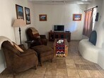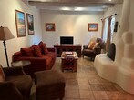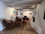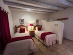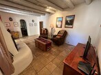 For rent is a classic, well laid out adobe in the town of Taos, walking distance to the Plaza. This home comes furnished and is move-in ready. The primary bedroom has a king bed, en suite bath, large closet and french doors that open to a lovely back yard. There is also a door that opens from the primary bath right out to a patio area where you will find a large hot tub. The second bedroom has its own entrance from the enclosed front patio, two twin beds (can be pushed together to make a king), generous closet space and separate full bath. This entrance also provides washer/dryer access (behind doors) and a roomy linen closet for more storage. The main entrance to the house is through the french doors into the living room, where you will find a large kiva fireplace. The kitchen is modern and well equipped with a gas stove, large fridge, dishwasher, microwave, stone countertops and plenty of storage. Viga ceilings and radiant heat tile floors throughout. Tenant is responsible for utilities: Town Water/Sewer, Kit Carson Internet and Electric, NM Gas and hot tub maintenance. Seeking mature and thoughtful tenant(s) for a minimum 1 year lease with the option to extend. No smoking. This home is being represented by Digs Property Management; deposit equal to one month's rent due at lease signing; first and last month's rent due at move in, no exceptions. Response to inquiries and showings by appointment will be accommodated M-F, 9-4.