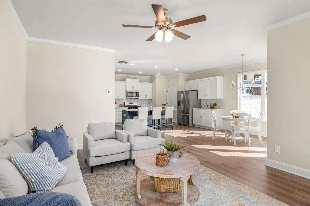 Welcome to this stunning like-new 2024 townhome for rent in Duluth,Georgia,located just steps from the historic Downtown Duluth Square. Perfect for professionals or small families seeking a balance of style and convenience,this home offers modern design,energy-efficient construction,and a walkable lifestyle surrounded by restaurants,shops,and local festivals. The open-concept main level features luxury vinyl plank flooring,a spacious family room with a modern electric fireplace and shiplap surround,and a seamless flow to the dining area and gourmet kitchen. The kitchen shines with white shaker cabinets,stone countertops,tile backsplash,and stainless-steel appliances,ideal for cooking and entertaining. Step outside to your covered rear porch—a private outdoor space for morning coffee or relaxing evenings. Upstairs,the primary suite offers double tray ceilings,a massive walk-in closet,and a spa-inspired bath with quartz double vanity,frameless glass shower,and designer tile. A versatile loft area provides the perfect home office,media room,or reading nook,separating the spacious secondary bedrooms for extra privacy. Additional highlights include a second full bath with quartz countertops,an upstairs laundry room,and a one-car garage with driveway parking. Residents enjoy maintenance-free living,a community swimming pool,and easy access to Rogers Bridge Park,the Chattahoochee River,and major employers along the I-85 tech corridor.