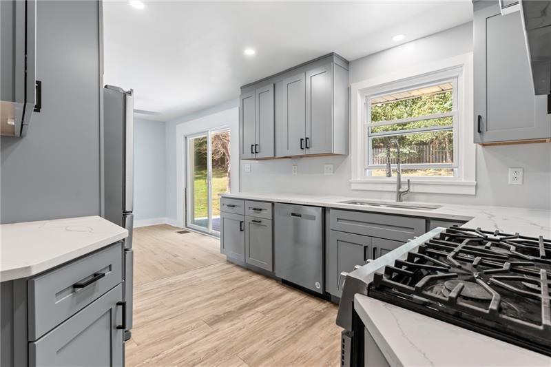 Updated home in Hampton School District! Available starting in May. This multi-level floorplan offers so much living space and flexibility. The front door brings you into open living room with remote-activated fireplace. The kitchen is complete with stainless appliances - refrigerator, gas stove, microwave, and dishwasher. Beautiful hardwood throughout the main levels! Upstairs, you'll find three bedrooms and one of the full bathrooms. Down one level from the kitchen is a finished bonus room - great for a home office, playroom, or additional living area. Across the hall is the 2nd full bathroom with shower. Plus access to the deep 1-car garage. The lowest level is unfinished and includes the laundry area with utility sink, plus plenty of storage space. Outside, enjoy a covered back deck, corner lot, and a great yard! One pet may be considered with an additional fee, depending on size and breed.