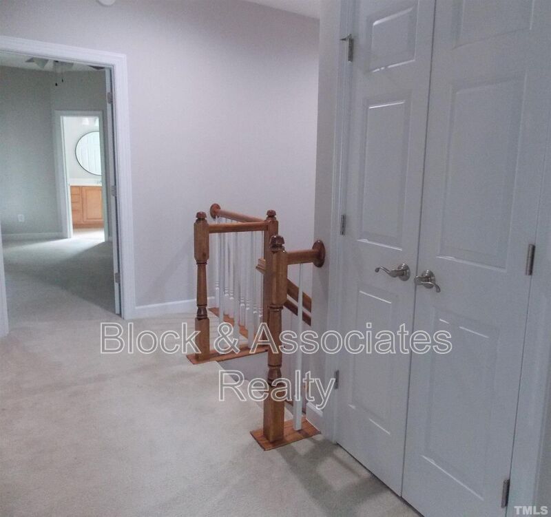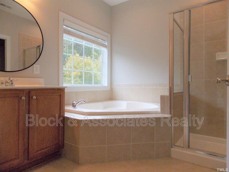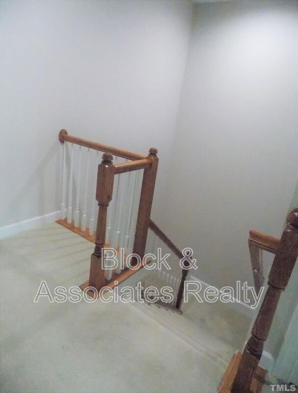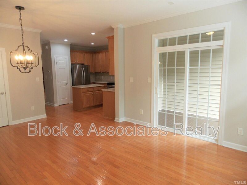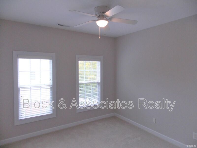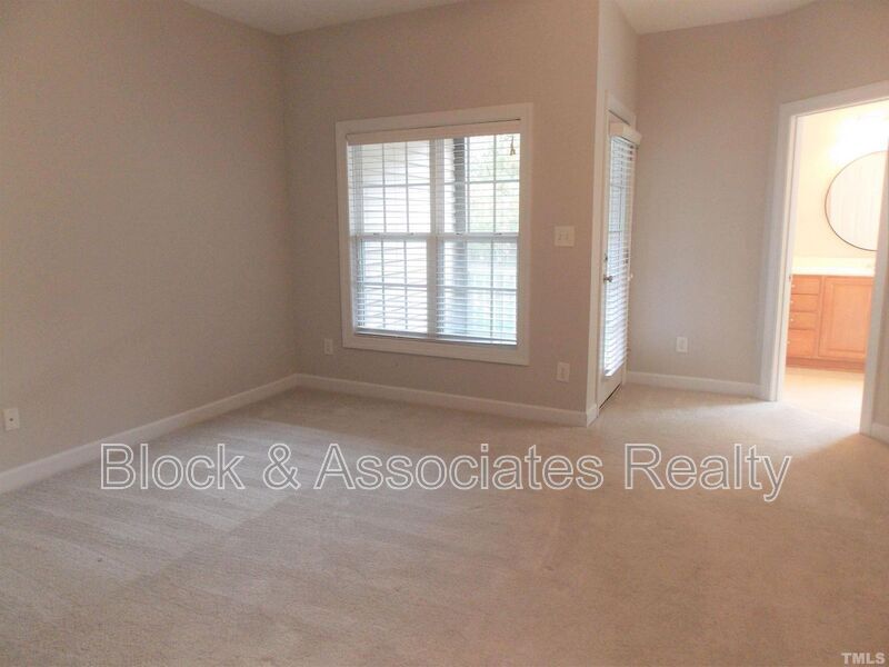 Available early January! Stunning townhome in very popular Bentley Ridge Townhomes w/ peaceful park views! Nearly 2500 sq ftw/ 4 bedrooms and rare 3.5 bath model. 1st Floor: Huge guest suite or rec room w/ full bath. 2nd Floor: Wood floors throughout, Large family room, quartz counters, SS appliances, dining + sitting room, covered deck. 3rd Floor: Spacious primary suite w/private deck overlooking park & bath w/ double vanity & sep garden tub/shower. 2 more nicely-sized bedrooms. LOCATION--Convenience to shopping, restaurants, Umstead Park, downtown and more! Small pet considered. No more than 2 qualified roommates. Photos prior to current Tenant. Please see Block & Associates website at for most accurate property details, photos, and application.