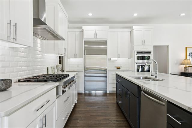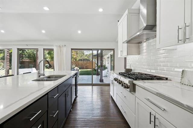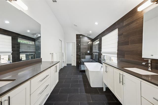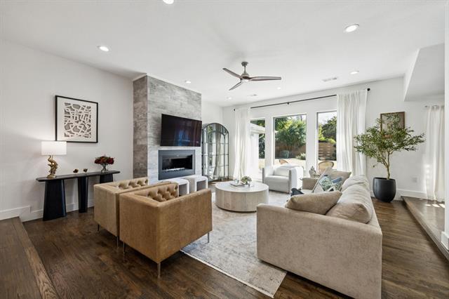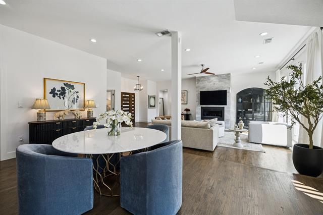 A luxury ranch-style residence in the Dallas private school corridor, taken to the studs and completely redesigned in 2018 for modern living with thoughtful sophistication. This home offers a split-bedroom floor plan with 4 bedrooms, 3.5 bathrooms, a dedicated office, and two spacious living areas, all set under 10-foot raised ceilings that enhance the open, airy feel. Situated on an incredibly manicured lot with pristine curb appeal, the property offers a serene outdoor setting complemented by perimeter landscape lighting and a smart garage system. Inside, real nail-down hardwood floors, high-end finishes, and abundant natural light set the tone for refined living. The chef-inspired kitchen features quartz counters, a large island with USB outlets, and casement windows throughout the home that bring in fresh air with ease. The private primary suite is thoughtfully separated from the secondary bedrooms, creating a true retreat. Every detail has been considered, including remote-controlled fans in every room, low-voltage wiring with a central tech hub, and wall-mounted cable-electric ready plugs, allowing for framed televisions in every space. This home is built for efficiency and comfort with closed-cell foam insulation throughout, tankless water heater, replaced sewer, plumbing, electrical systems, and 220V plug in the garage for electric vehicle charging. Two attic spaces—one over the garage—provide ample storage and easy access. Located just down the street from Glen Meadow Park, and Glen Cove Pool, residents enjoy quick access to green space, trails, and outdoor recreation. With its full modern transformation, premium upgrades throughout, and a like-new feel, this turnkey luxury property offers an exceptional lifestyle in a premier Dallas location.