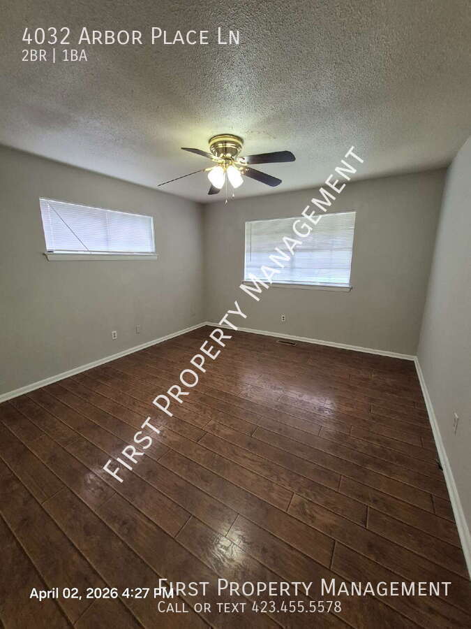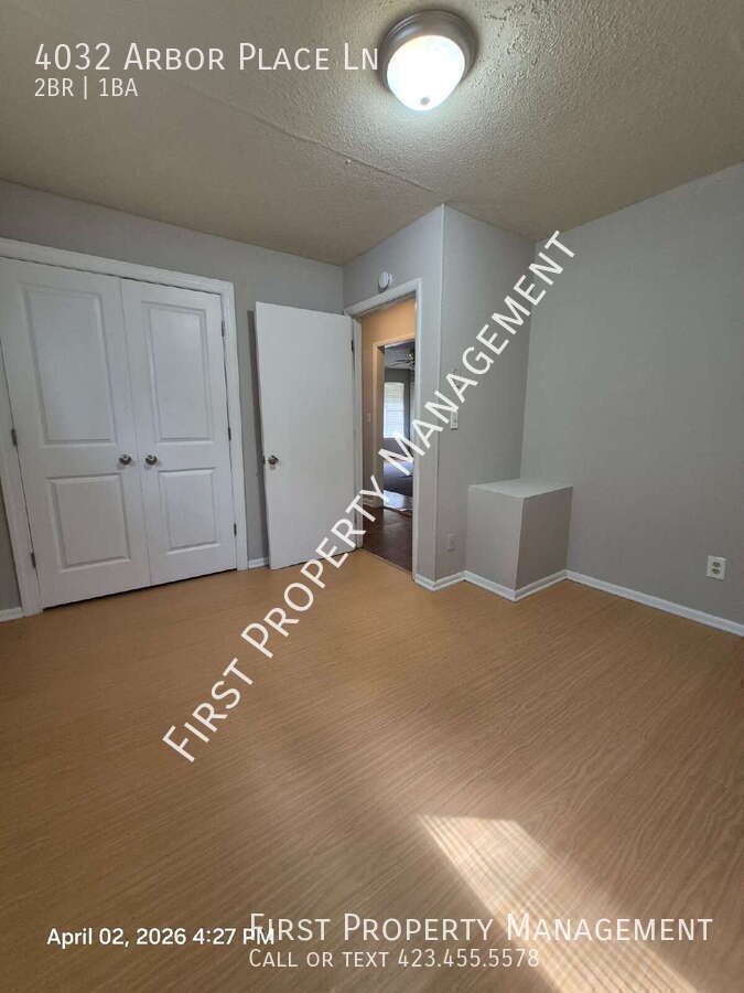 Welcome to 4032 Arbor Place Ln! This property sits just off Hwy 58. It is close to 153, giving easy access to most places in Chattanooga! This 2 bedroom 1 bath has a large kitchen with washer/dryer hookups, a shared deck off the kitchen and a nice sized backyard. Lawn care is included with rent. It is also available for self-tours through Showmojo, so schedule your self-tour today! This property does NOT accept section 8. Other Resident Charges (Please Review!): Resident Benefits Package Included with all residential leases under First Property Management is a mandatory Resident Benefits Package. Offering extra protection and convenience to our residents, the package includes: Resident Insurance Utility setup Expedited maintenance Reimbursements towards resident-caused damages and more... Package cost is $39.99/month (plus $5 for each additional leaseholder) Resident is responsible for utilities. NO PETS.Central Heat/Air Hvac Elec Laundry Hookups Range (Elec) Self Showings Vinyl