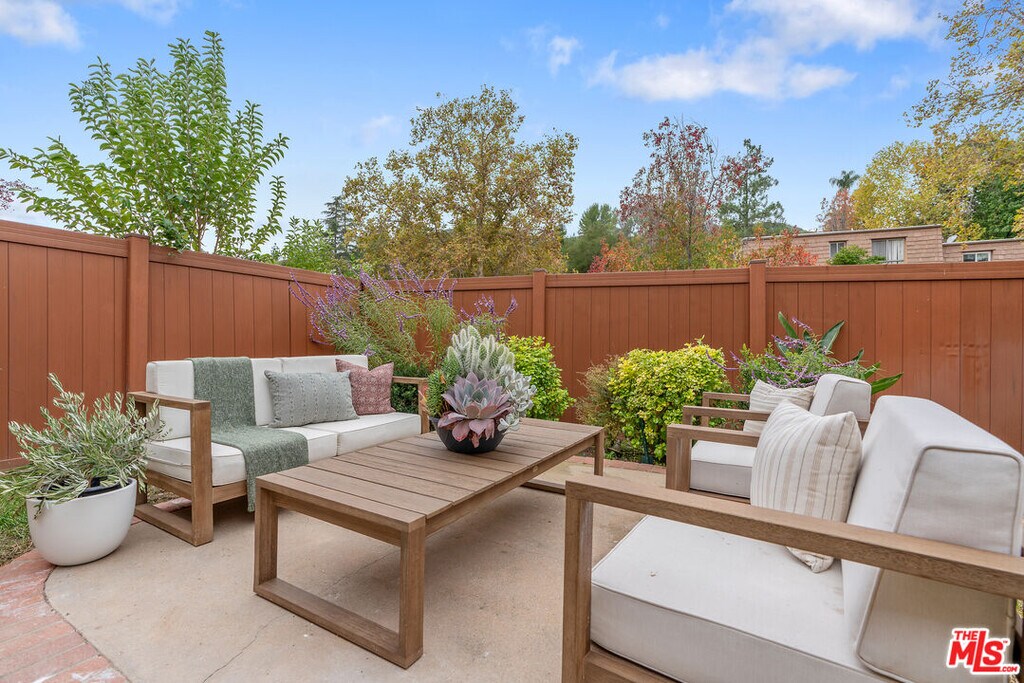 Beautifully Upgraded End Unit Townhome with One of the Largest Private Yards in the Community! Located in the heart of Agoura Hills, this recently upgraded end-unit townhome offers exceptional indoor-outdoor living with one of the largest private yards and patio in the community. The inviting floor plan features spacious living and dining rooms with walls of glass that fill the home with natural light and open to a large patio and lush backyard perfect for relaxing or entertaining. Upstairs, you'll find two comfortable bedrooms and a versatile bonus den or home office, ideal for today's lifestyle. The newly renovated bathroom showcases designer Bedrosians tiles and stylish finishes. Additional highlights include updated flooring, fresh paint, and direct access to the yard from the main living areas. The home is walking distance to the Community pool and spa! Enjoy the best of community living with the feel of a private home, just moments from parks, top-rated schools, and all that Agoura Hills has to offer. Located 1/2 mile from Liberty Canyon Trailhead for hiking & mountain biking. Easy access to 101 freeway, close to Pepperdine University, Malibu, restaurants & shopping. All this and in Las Virgenes School District. MLS# 26720841