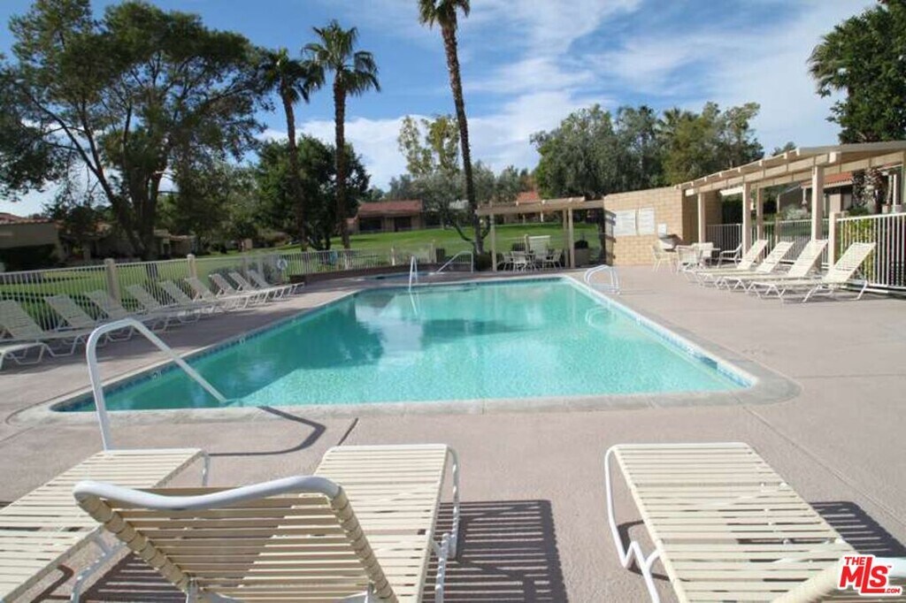 Vintage Model - 2BR/2BA - 1177 sq. ft. - This unit is just steps from the sparkling pool and is located on a lush greenbelt. This will be your new favorite unit! This beautiful condo has everything you could possibly want and will be your desert home away from home! "Vintage" Model floor plan with Dual Master Suites on either side of living room Close to Pool in the Greenbelt KITCHEN: Updated with all new appliances! Bar seating for 4 Electric Cooktop Microwave LIVING AREA: Ceiling fan 42" Flat panel TV w/cable Frontier Cable TV + Free Long Distance to US + Canada! High Speed Wireless Internet MASTER SUITE: King Size Bed 42" Flat panel TV w/cable Walk-in closet Private bath GUEST SUITE: 2 Twin Size Bed 25" Flat Panel w/ Cable PATIO: Large extended patio! South facing Comfortable seating Lounge chairs BBQ View of Greenbelt and pool Carport ***THIS IS A PET FREE PROPERTY** MLS# 25573617