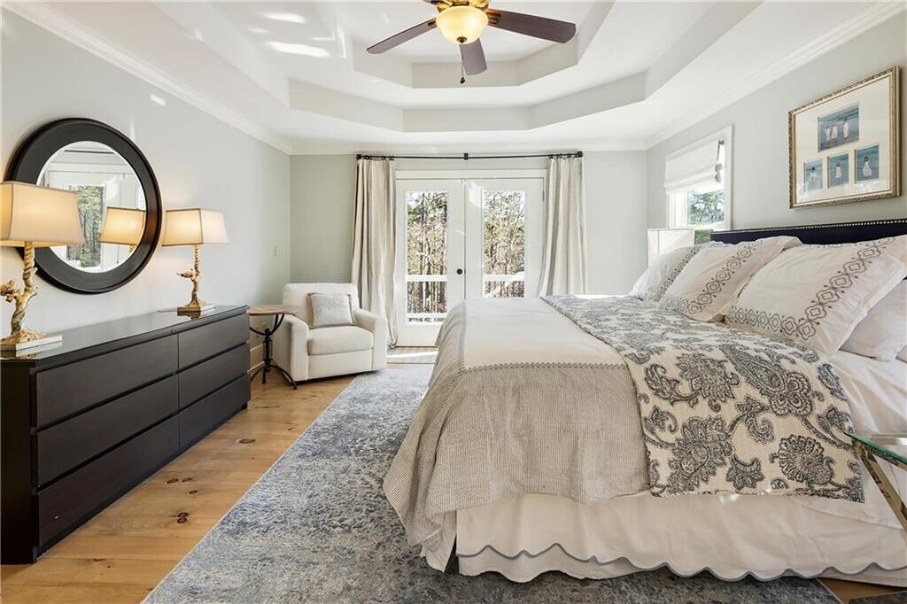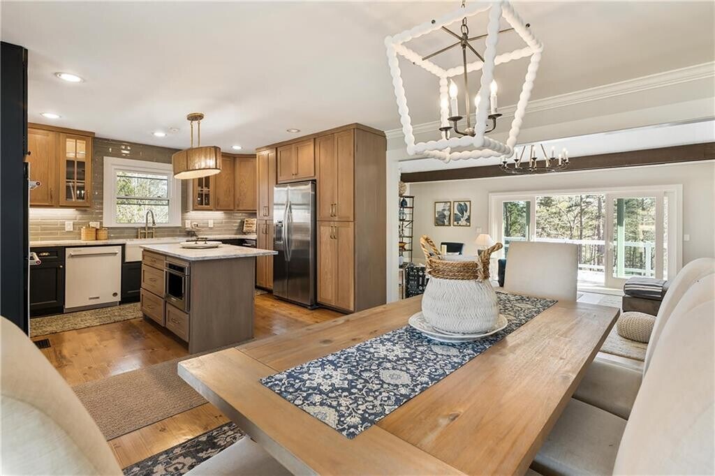 Furnished,all utilities paid,lakefront living meets refined Southern charm at this beautifully reimagined cottage. Tucked away on a quiet lakeside street in Forsyth County,this turn-key home feels like a private retreat the moment you arrive. A generous covered rocking-chair front porch welcomes you home,Inside,the home has been recently and fully renovated with an upscale lakeside aesthetic—high vaulted,beamed ceilings,warm finishes,and thoughtfully curated furnishings create a sophisticated yet comfortable backdrop for everyday living or an extended stay. The primary suite on the main level offers true convenience,featuring an oversized walk-in closet and a spacious,well-appointed bathroom. Three additional bedrooms and 2 full baths are on the terrace level. Step outside to the expansive rear deck,perfectly positioned to capture serene views of the lake,trees,and surrounding landscape— Just beyond,a gentle path leads to your 2-slip deep-water dock,covered and lit for evening enjoyment. There’s ample space here to gather with friends and family,host summer weekends,or simply sit and watch the water. The deep water is a true luxury. The location is as convenient as it is beautiful: just off GA-400 Exit 16,along Pilgrim Mill Road,with Tidwell Park at the end of the street for easy access to boat ramps,picnic areas,and additional lakeside recreation. You’re close to everyday conveniences,dining,and shopping,yet the property feels worlds away—a true “vacation-style” lakeside cottage that’s easy to lock and leave. This home is offered furnished and ready for you to simply arrive with your suitcase. Whether you’re in between homes,relocating,remodeling,or dreaming of an extended lake escape,the flexible lease terms—approximately 4,6,or up to 8 months—allow us to tailor the stay to your needs.