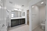 This stunning 3 bedroom 2.5 bathroom home boasts an abundance of natural light and beautiful neutral tile in the high traffic areas. The spacious kitchen features 42'' espresso cabinets,an island,gas stove,upgraded granite counters,breakfast bar,pantry,and stainless steel appliances. The primary bathroom includes double sinks,a linen closet,a large walk-in closet,and a shower/tub combo. Additionally,there is an upstairs laundry with a washer and dryer included,as well as solar panels to help with electric bills. This home comes with a 2 car garage and SmartHome features including an Alexa-controlled thermostat,Ring Doorbell,and garage opener. Conveniently located just seconds away the community park,pool,and greenbelt. Property currently occupied until 9/30/25 ***NO CATS allowed in our Rentals except for Assistive Animal*** Tenant to pay $86/month for Solar.