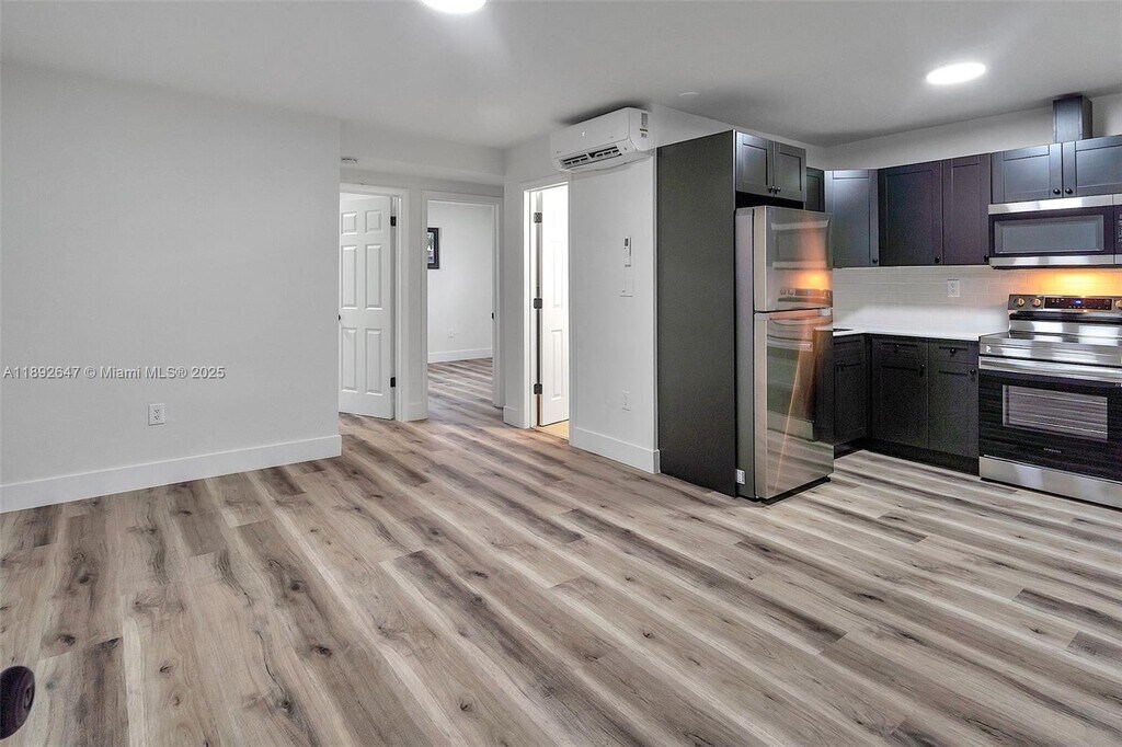 Beautifully finished spacious 1 bedroom unit. Light gray wood floors thru-out, new kitchen, new appliances, impact windows. Large spacious bathroom with shower. Plenty of closet space. Laundry facilities on site. 2nd floor unit. One block off bird road. Walk to restaurants and shops. Assigned parking.