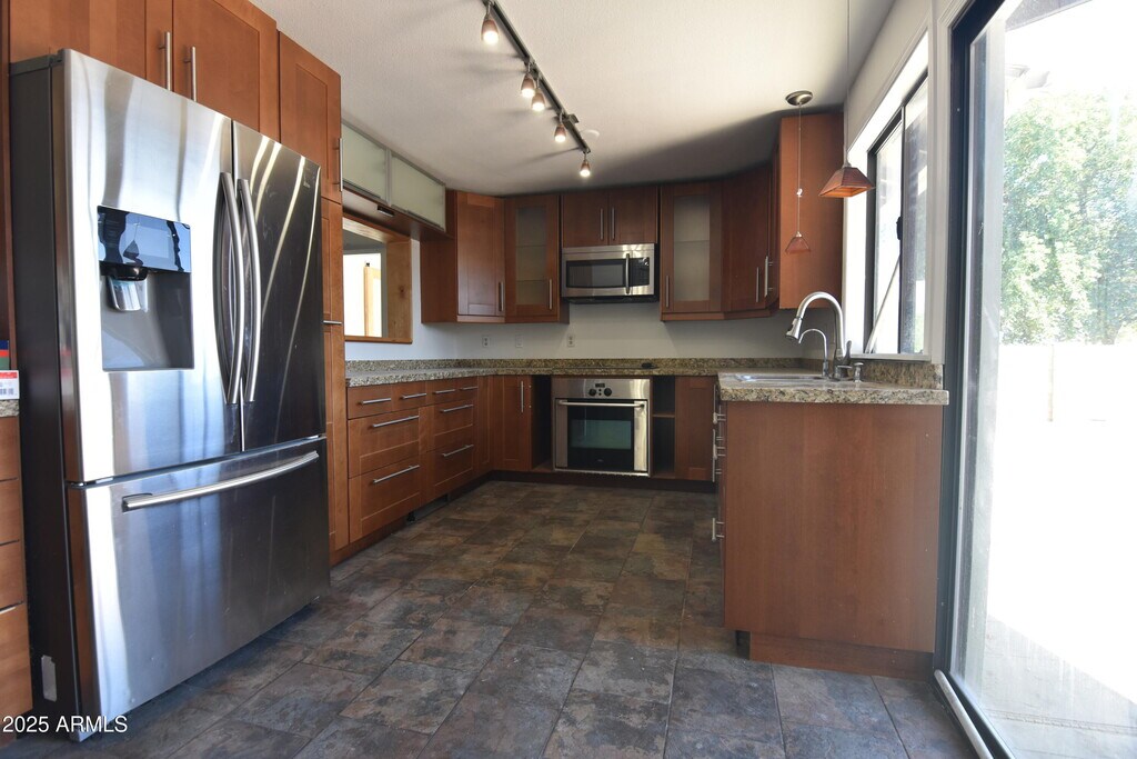 Style & sophistication in Old Ahwatukee! Just steps from walking trails,this stunning remodel features a dramatic living room with vaulted ceilings and a full rock wall. The open dining area flows into a remodeled kitchen with upgraded cabinets,granite counters & stainless appliances. Enjoy a cozy family room plus a flexible 4th bedroom/office. The guest baths feature modern vanities,vessel sinks & updated lighting. The luxury master retreat boasts vaulted ceilings,patio access & a spa bath with dual sinks,jetted tub & dual-head shower. The backyard oasis offers a sparkling pool,covered patio & enclosed play yard/dog run perfect for relaxing or entertaining.