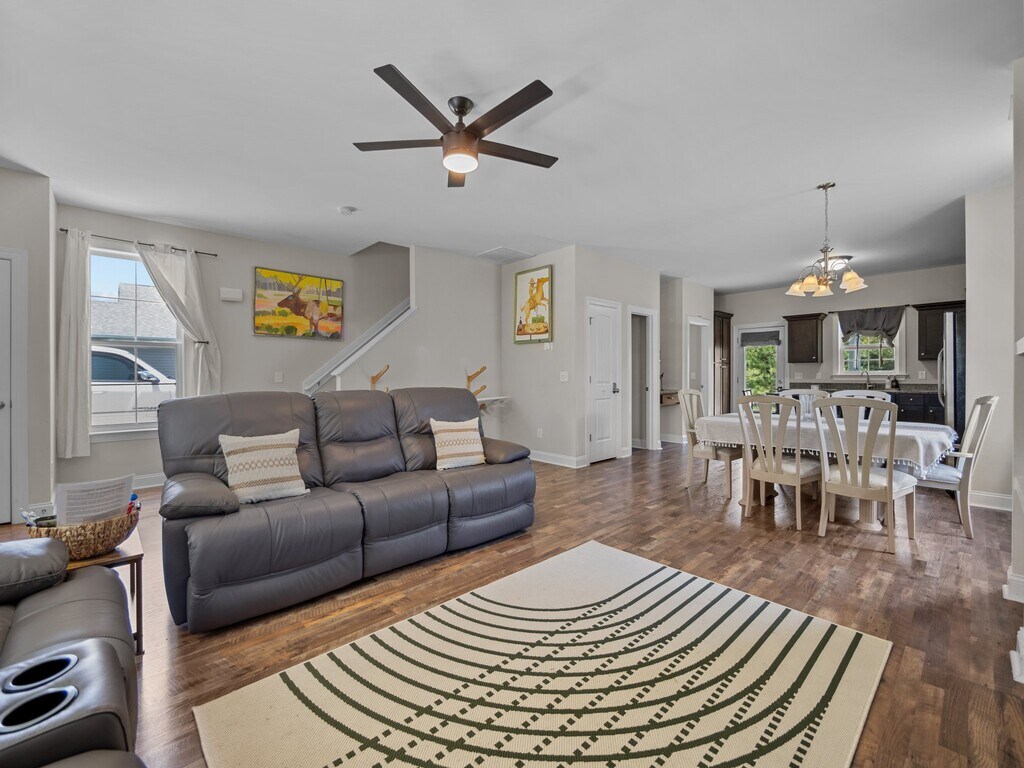 Welcome home to this beautifully maintained 3-bedroom, 2.5-bath home located in the desirable Hidden Oaks at Hunters Creek subdivision! Situated on over an acre of land, this property offers privacy and peaceful living while still being conveniently located near MCB Camp Lejeune. The main level features laminate hardwood flooring throughout, 9-foot ceilings, and a spacious living room centered around a stunning marble-surround gas fireplace with custom built-in shelving on both sides. The open-concept kitchen and living area is perfect for entertaining, complete with granite countertops, stainless steel appliances, and plenty of cabinet space. Upstairs, you'll find all three bedrooms, including a generously sized primary suite with a large walk-in closet and private ensuite bath. The additional bedrooms are also well-sized with ample closet space, and the upstairs is comfortably carpeted. Step outside to enjoy the covered back patio overlooking your private backyard—perfect for relaxing with your morning coffee or unwinding in the evening. Tucked away on a quiet side street with minimal traffic, this home offers the ideal blend of space, comfort, and convenience. Don't miss the opportunity to make this home yours—schedule your showing today! Avoid Paying a Cash Deposit – Qualify for Obligo's Deposit-Free Move-In! Interested in keeping more money in your pocket at move-in? We're pleased to offer you the option to qualify for a deposit-free move-in with Obligo. This simple and fast process could save you the hassle and upfront cost of a traditional cash deposit. For more information and to see if you qualify,