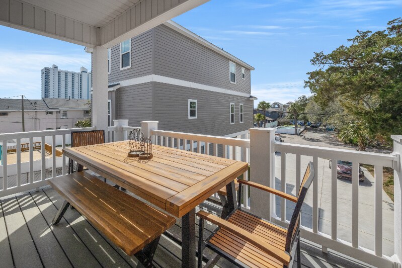 Property Id: 1594752 Welcome to your coastal oasis in Myrtle Beach! This brand-new 4-bedroom raised beach house with a pool is the epitome of luxury and convenience, just 0.2 miles from the vibrant boardwalk and 1000 ft from the sandy shores. Inside, you'll find a spacious and elegantly designed interior. The fully stocked kitchen is a chef's delight, with modern appliances and sleek countertops, perfect for any culinary creation. The house features two master suites: one downstairs with a king bed and another upstairs with a king bed, both offering comfort and privacy. Additional bedrooms include a queen bed and a bunk bed that sleeps 4, ideal for kids or extra guests. Outside, relax on a private balcony with outdoor dining or enjoy the inviting pool, perfect for cooling off under the sun. This new construction combines modern amenities with coastal charm, promising a memorable Myrtle Beach getaway filled with relaxation, adventure, and the refreshing sea breeze. This is a month to month winter rental