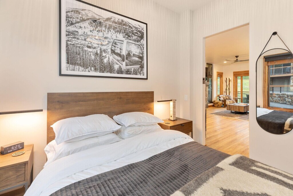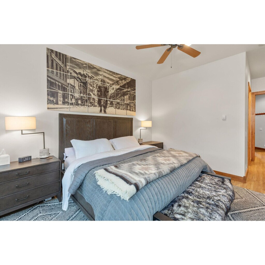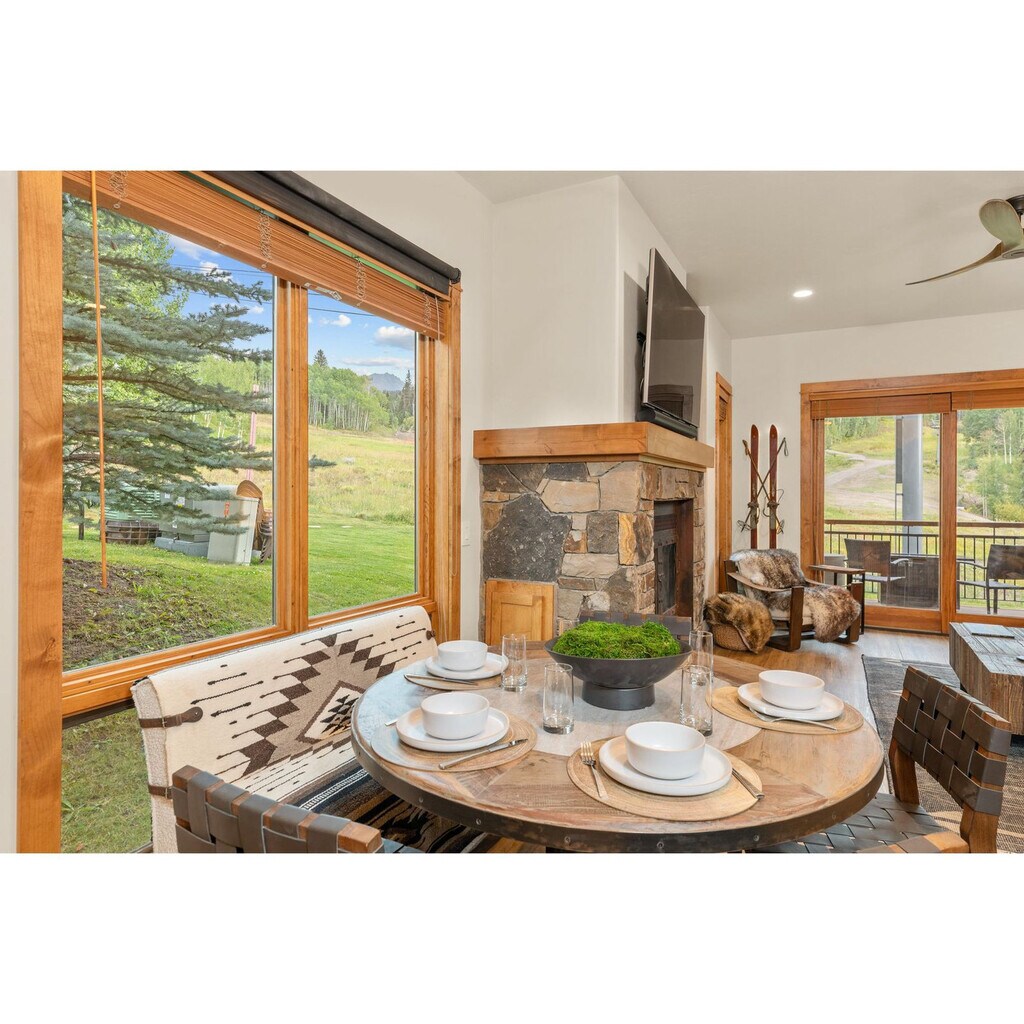 Feel at home in Terraces A+, a beautifully designed one-level condo offering true ski-in/ski-out access on the Meadows ski run in Telluride’s Mountain Village. This condo features stylish interiors curated by a professional designer to create a warm and inviting retreat. Relax after a day on the mountain in the living room by the fire, sink into plush seating with Sonos sound, or fire up the barbecue grill on your private balcony while taking in mountain air. Radiant in-floor heating is available throughout. Entertainment options include a 65” smart TV in the living room with a premium sound system (Sonos Arc & wireless subwoofer) and smart TVs in both bedrooms with streaming apps. This property sleeps up to 4 guests comfortably and is perfect for couples, friends, or small families. The slopes are literally at your doorstep. The Chondola lift (a gondola-chair hybrid) is just steps away, connecting you to Mountain Village’s shops, restaurants, and the free gondola into downtown Telluride. Hike and bike trails are just outside, with Mountain Village dining and events minutes away. If you pay by credit card you will be charged an additional 5% credit card processing fee. (For credit card payments, we currently accept VISA, MASTERCARD, AMEX, and DISCOVER. If you would like to avoid this fee you can place a Wire Transfer, Send a Check, and/or Venmo us. Contact us for details. Registration Number: 000899 [SI]