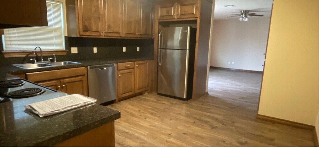 FIRM NO PETS POLICY. 404 Boston, Jones, available on about 12/01/2025- 2 bed 1 bath home, 750 sq. ft. on city corner lot, FIRM NO PETS POLICY, $1200 per month and $1200 security deposit due at Lease signing (plus $1200 last month's rental payable within first 60 days). Vinyl floors, nice window treatments, appliances including refrigerator, range, microwave oven, dishwasher and disposer, washer dryer hookups in garage. Tenant maintains flower beds and weekly lawncare. Six (6) month Lease then goes into month-to-month Lease New tenant would need to be able to pay all deposits to OG&E for electric and pay all deposits to City of Jones for water, sewer and Cards, INC. trash service. Located at the corner of Boston and 3rd Street. Fenced in yard. Short walk to Main Street.