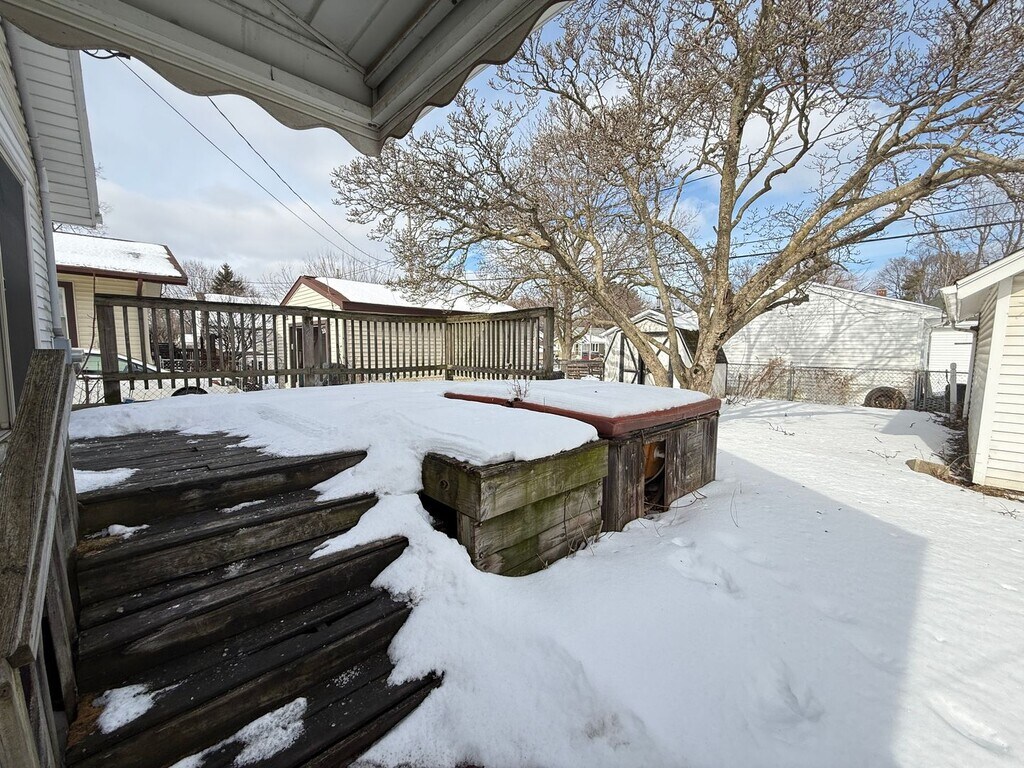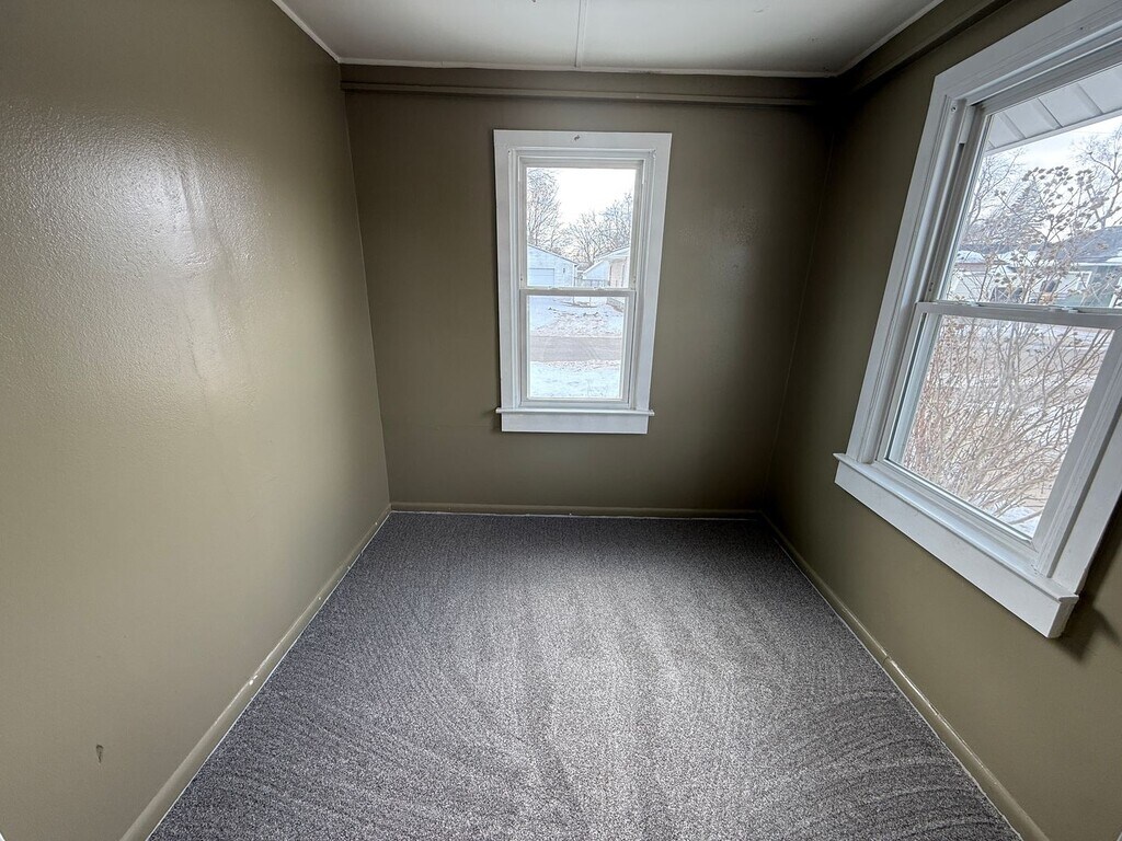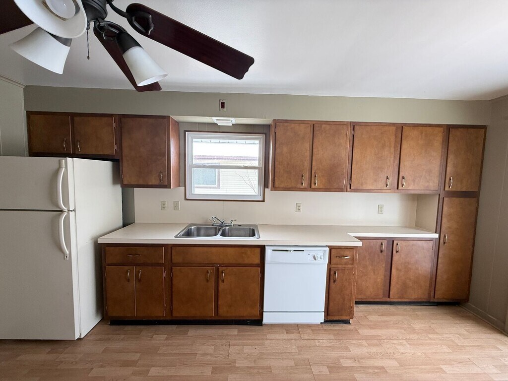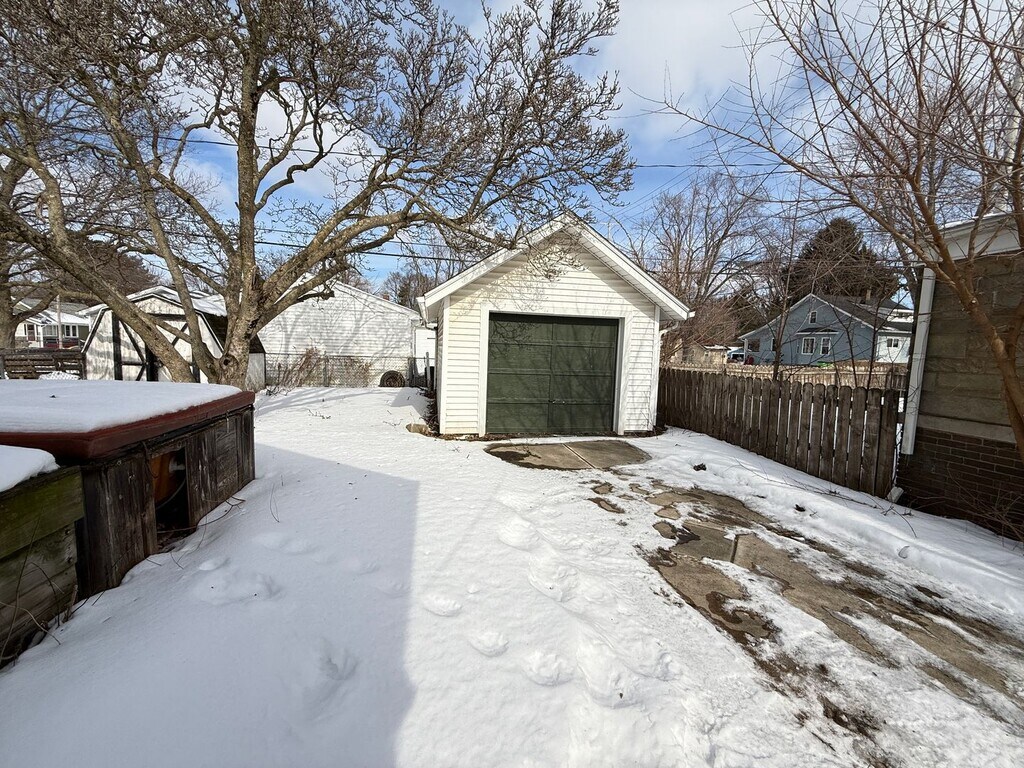 Two-bedroom, one-bath single-level ranch home offering comfortable living and a functional layout. All new carpet installed in 2026, giving the home a fresh, updated feel throughout. The home features a large galley kitchen overlooking the backyard, complete with a dishwasher, stove, refrigerator, and microwave. The living room is generously sized and includes an attached bonus room that would work well as a home office, playroom, or reading nook. Additional features include a full basement with washer and dryer hookups, a private partially fenced backyard, a one-car garage, and an enclosed front entrance for added convenience. This home provides practical space both inside and out.