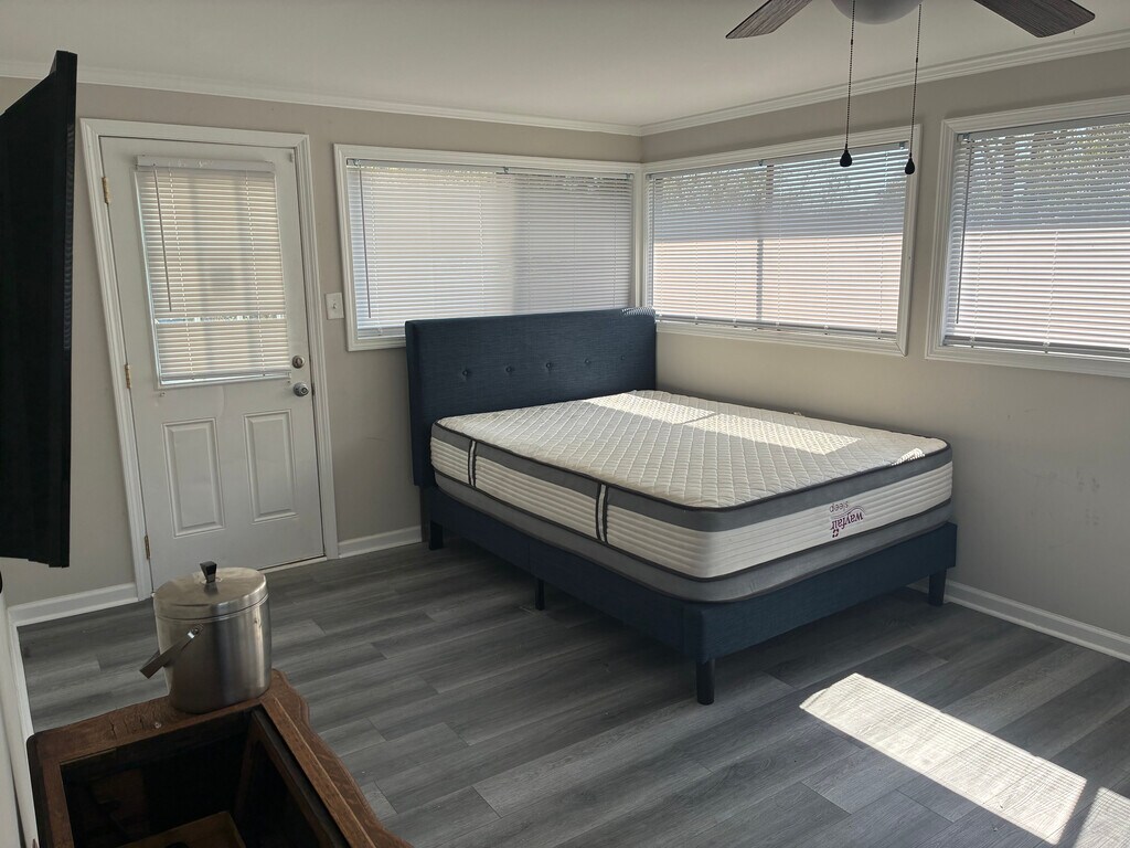 Room for rent: This charming home has received extensive updates. Custom cabinetry in kitchen with with granite countertops, updated bathrooms, gorgeous luxury vinyl plank flooring in main areas, plush carpet in bedrooms, updated vinyl windows providing tons of natural light, a serene sunroom for nice for relaxing, an incredibly large front porch and a large rear backyard ideal for your future oasis. Walkable space under home for additional storage. Perfectly situated close to NCCU with easy access to downtown, local interstate and shopping. Don't walk, run to your new, stylish, and charming home. *Every room comes with a bed, but bedroom furnishings are removable at tenant request Note: Do not visit this property without first contacting us to schedule a tour at the number below.