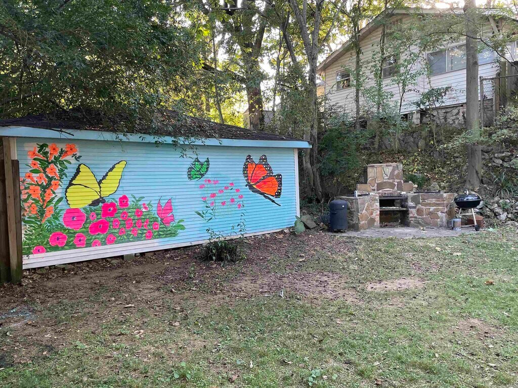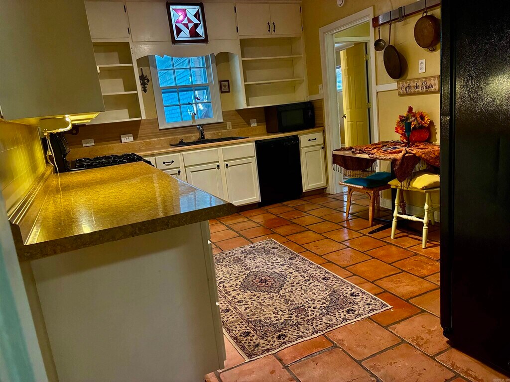 Listen to church bells chime as you enjoy coffee on the red porch swing on large front porch in this Cute Hillcrest 1-level cottage with hardwoods. Covered carport & 2 storage rooms: one, a large workshop/craft/art studio/Rec room, another smaller, separate one with additional fridge. Black appliances: Fridge, gas range, dishwasher & microwave in Saltillo tiled eat-in large kitchen with open shelves & undercounter lighting with white cabinets. 2 bedrooms with Saltillo tiled full bath with tub-shower combo in-between in front area, back bedroom with private, tiled full bath has standup shower. All bedrooms have 2 windows & Ceiling fans. Rock Fire pit & charcoal grill in shaded, fenced level yard. Flagstone patio in back, concrete patio off kitchen. Full sized Washer & dryer connections in hall closet. If renter doesn't have their own, washer & dryer available. Decorative FP with mantle, large picture window in living with 2 additional windows let natural light stream in. Separate dining. Walk to neighborhood grocery, boutiques & cafes.