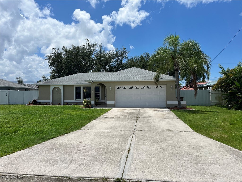 Beautiful 3 bedroom,2 bathroom Cape Coral home with over 1,200 sq. ft. of living space. This property features a full two car garage and a large fenced backyard,perfect for outdoor living and entertaining. Pet friendly! Conveniently located on Santa Barbara Blvd in the heart of Cape Coral,you’ll enjoy quick access to shopping,dining,schools,and major roadways,all within a quiet and established neighborhood. Please call agent if interested.