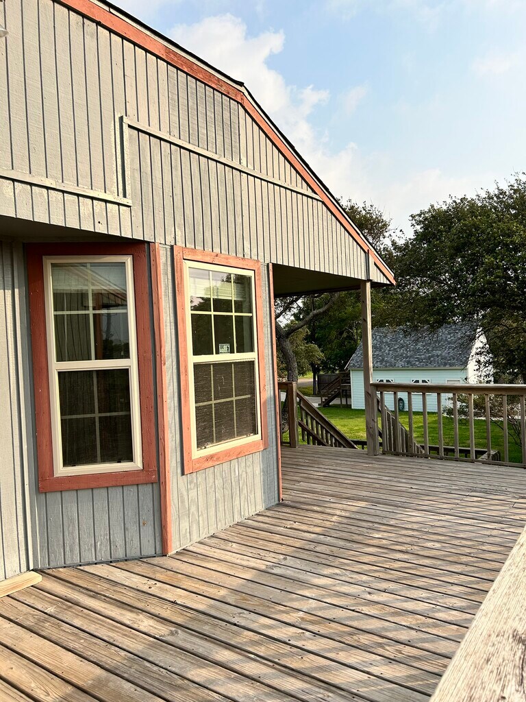 Nice 2 bedroom + flex space (could be a third bedroom space), 2 bath house in Flour Bluff located on Laguna Shores Rd. Huge wrap around porch and carport. Sit on your porch and look out at the Laguna Madre. Beautiful exposed wooden beams on living room ceiling, fireplace, and a spacious 1327 sq ft of living area. Freshly painted and new flooring installed. All appliances available including washer and dryer. Available 11/01/2025