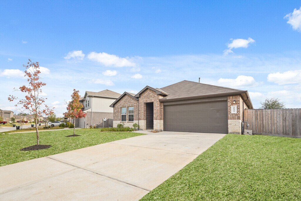 Discover modern luxury at 40422 Garden Heights Ln,a stunning 2023-built rental home in the sought-after Mill Creek neighborhood of Magnolia,TX. Spanning 1,850 sqft.,this residence offers an open-concept layout perfect for entertaining and daily living. The heart of the home is the kitchen featuring gleaming quartz countertops,stainless steel appliances,and a functional island that overlooks a spacious family room. This home accommodates growing families with 4 bedrooms and 2 baths,including a private primary suite with a large walk-in closet. Enjoy peace of mind with an installed security system and an attached 2-car garage for ample storage. The exterior is equally impressive with a large,fenced backyard,deck,and porch—ideal for pets,kids,and weekend BBQs. The home is also conveniently located right beside the community pool and playground. Zoned to the highly-rated Magnolia ISD,this property combines top-tier education access with the comfort of new construction. MLS# 75540826