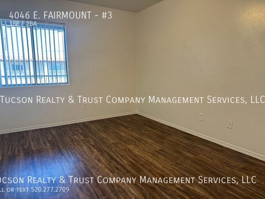 Get 1/2 off the first full month's rent with a 12-month lease on this spacious 3-bedroom, 2-bathroom apartment located in the heart of Tucson! This ideally located 3-bedroom, 2-bath apartment is perfectly situated less than 15 minutes from the University of Arizona and Downtown Tucson, making it an excellent choice for students, faculty, or anyone that desires to live in a convenient, central location. This unit features washer and dryer hookups, a private balcony, central AC, and a separate storage room - providing both comfort and functionality. Enjoy covered parking, easy access to public transportation, and close proximity to shops and restaurants. With spacious living areas and essential amenities, this apartment offers a great balance of space, convenience, and value. To schedule your Showing now, call . All information deemed reliable but not guaranteed. Please contact our office to confirm pricing, availability and details at . We do not advertise on Craigslist or Facebook, nor would we require funds to be wired or any funds paid through a payment app on your mobile device. Tucson Realty & Trust Co. Management Services, L.L.C. complies fully with all federal, state and local Fair Housing laws. $250.00 Non-Refundable pet fee for the first pet, $150.00 Non-Refundable Pet fee for each additional pet. $25.00 per month, per pet, pet rent. Central Covered Patio Dining Area Hvac Laminate Wood Flooring Storage
